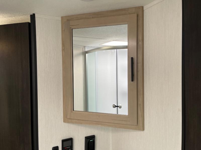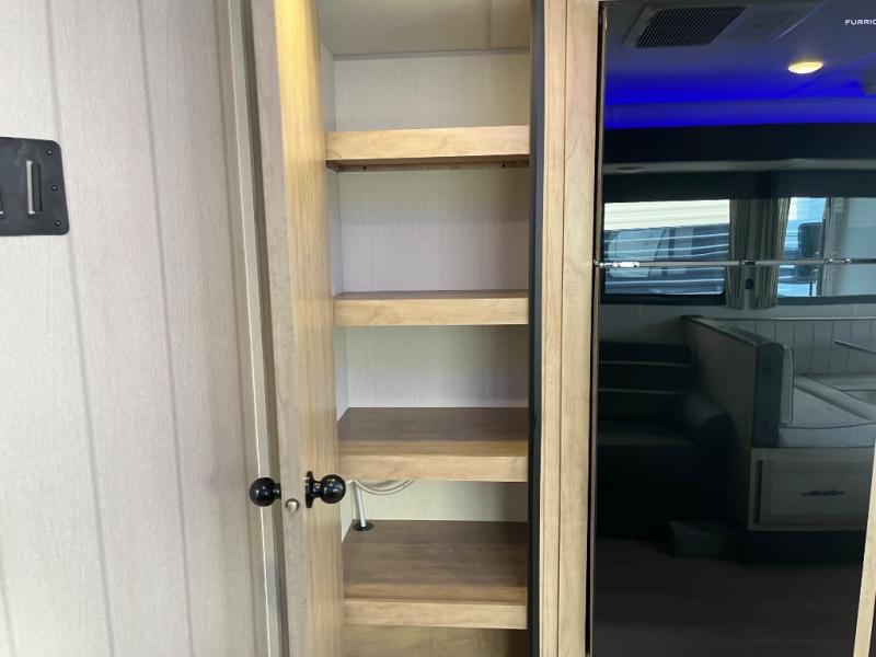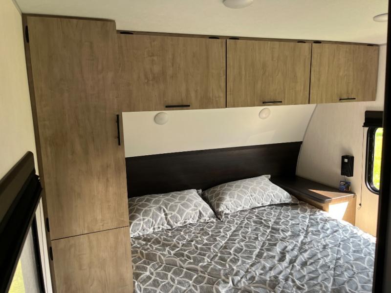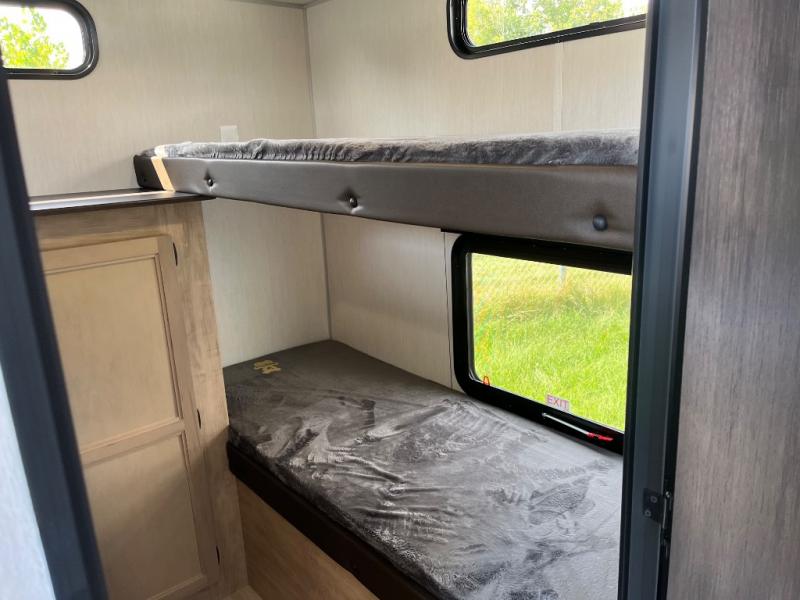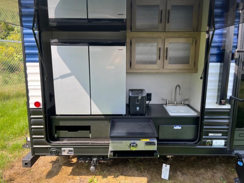 Your larger family will love spending weekends away with this Cherokee Grey Wolf travel trailer as their home away from home. This model offers lots of sleeping space with three bunk beds in the rear private bunkhouse. In the front, there is a master suite with a wardrobe beside RV king bed, and it even has private access to the dual-entry bath. The two entry doors will make accessing the trailer easy for everyone, and you will appreciate the abundant storage throughout this unit including large overhead cabinets, a spacious pantry, and numerous outside storage compartments for all of your outdoor gear. There's even an outside bar & grill!