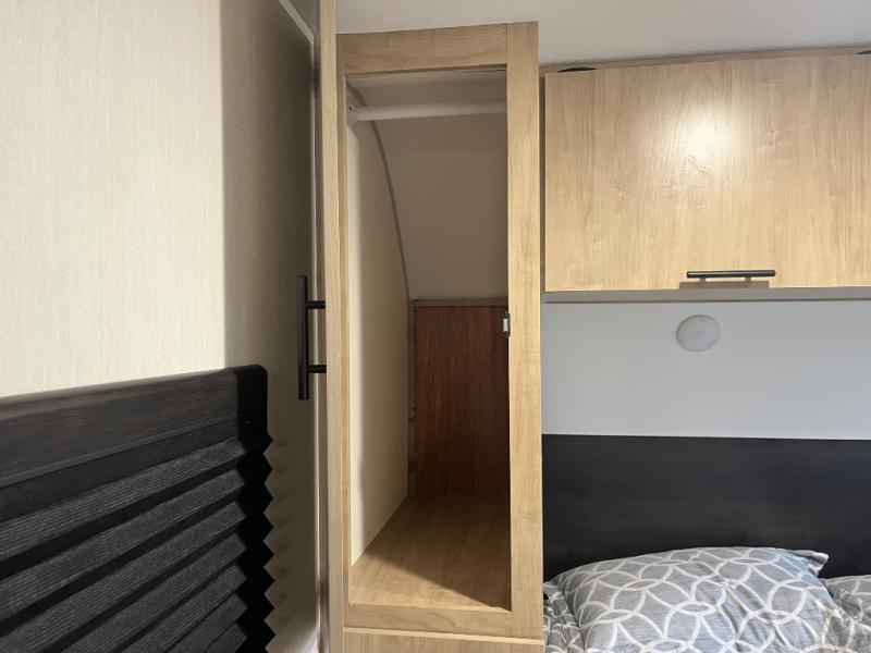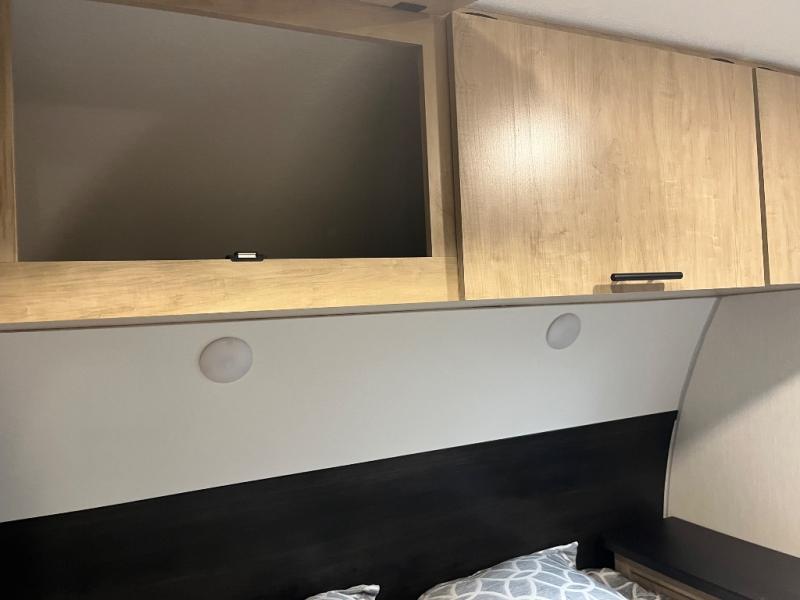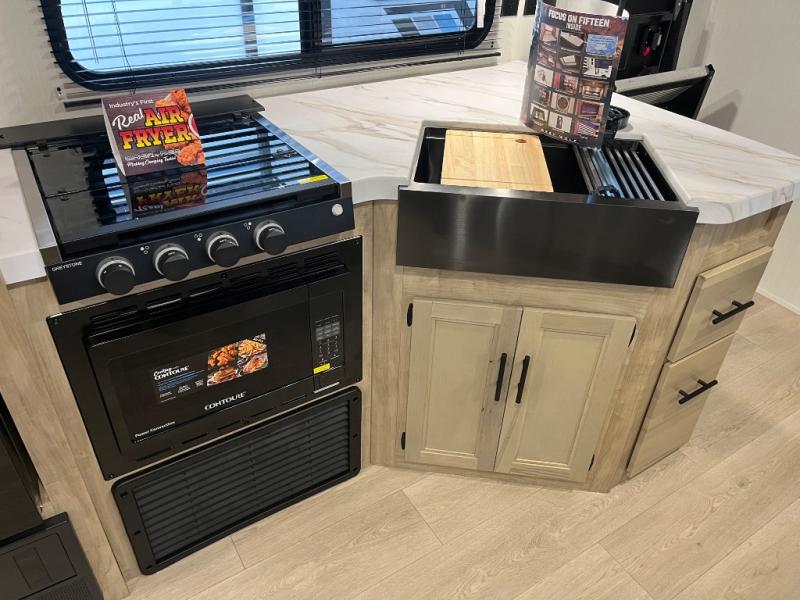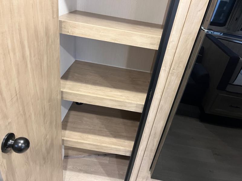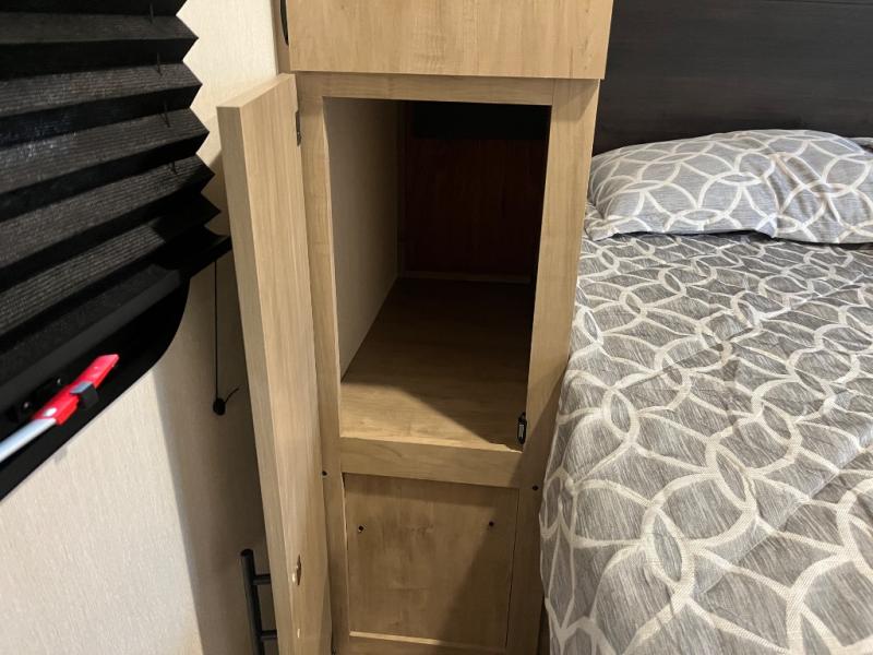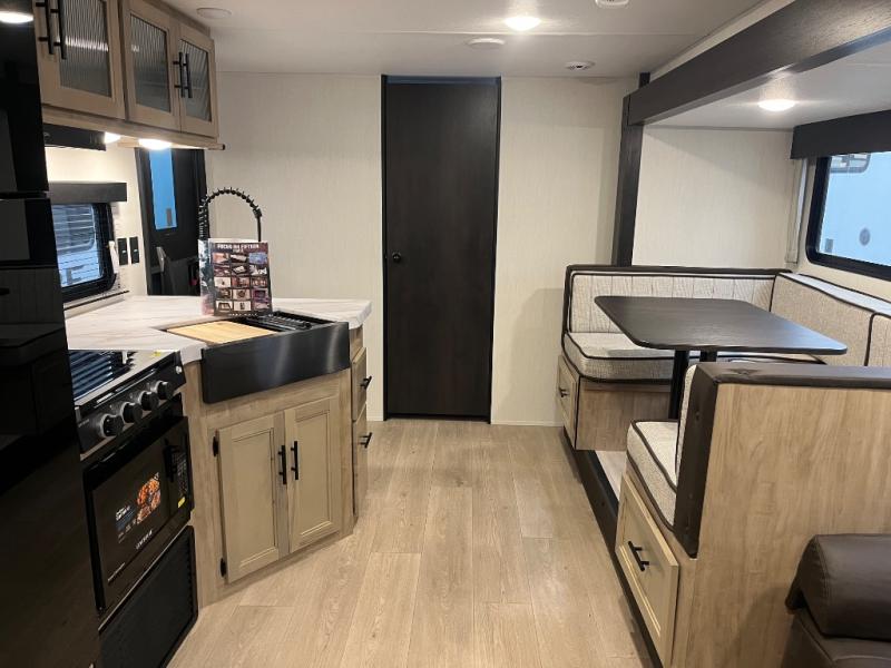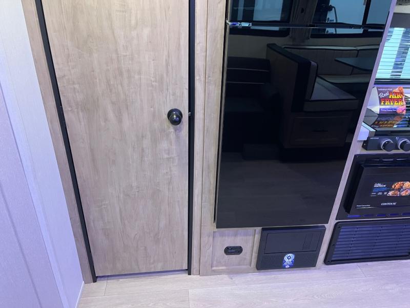 Your larger family will love spending weekends away with this Cherokee Grey Wolf travel trailer as their home away from home. This model offers lots of sleeping space with three bunk beds in the rear private bunkhouse. In the front, there is a master suite with a wardrobe beside RV king bed, and it even has private access to the dual-entry bath. The two entry doors will make accessing the trailer easy for everyone, and you will appreciate the abundant storage throughout this unit including large overhead cabinets, a spacious pantry, and numerous outside storage compartments for all of your outdoor gear. There's even an outside bar & grill!