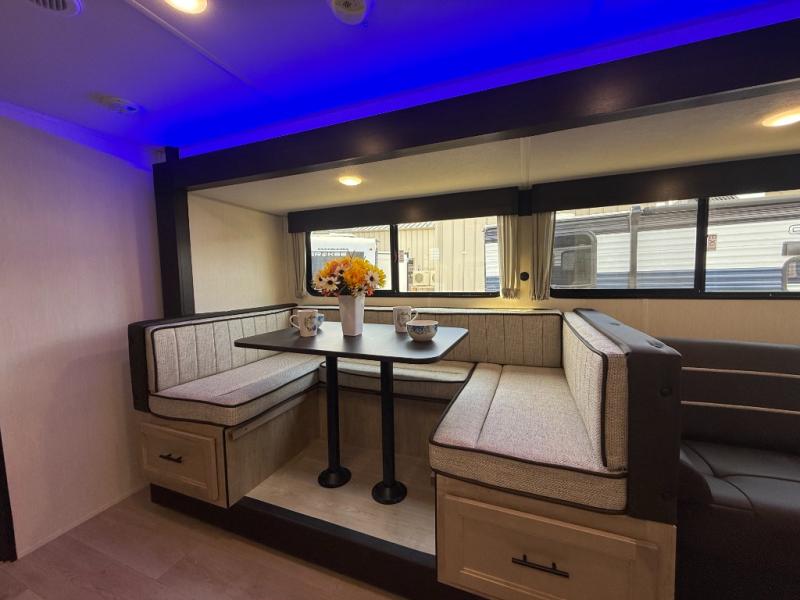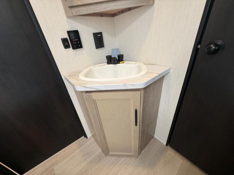 Your larger family will love spending weekends away with this Cherokee Grey Wolf travel trailer as their home away from home. This model offers lots of sleeping space with three bunk beds in the rear private bunkhouse. In the front, there is a master suite with a wardrobe beside RV king bed, and it even has private access to the dual-entry bath. The two entry doors will make accessing the trailer easy for everyone, and you will appreciate the abundant storage throughout this unit including large overhead cabinets, a spacious pantry, and numerous outside storage compartments for all of your outdoor gear. There's even an outside bar & grill!