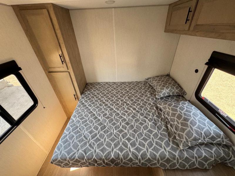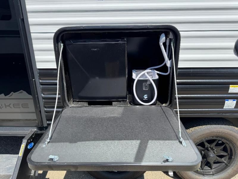 Your larger family will love spending weekends away with this Cherokee Grey Wolf travel trailer as their home away from home. This model offers lots of sleeping space with three bunk beds in the rear private bunkhouse. In the front, there is a master suite with a wardrobe beside RV king bed, and it even has private access to the dual-entry bath. The two entry doors will make accessing the trailer easy for everyone, and you will appreciate the abundant storage throughout this unit including large overhead cabinets, a spacious pantry, and numerous outside storage compartments for all of your outdoor gear. There's even an outside bar & grill!