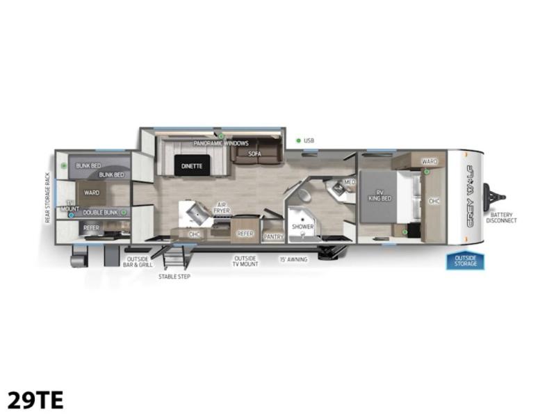 Forest River Cherokee Grey Wolf travel trailer 29TE highlights: