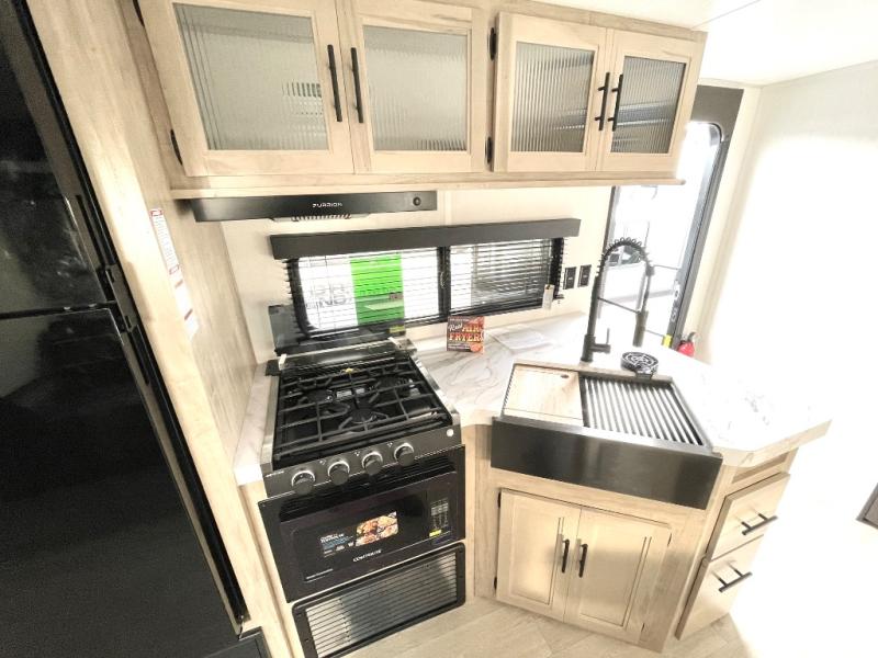 Your larger family will love spending weekends away with this Cherokee Grey Wolf travel trailer as their home away from home. This model offers lots of sleeping space with three bunk beds in the rear private bunkhouse. In the front, there is a master suite with a wardrobe beside RV king bed, and it even has private access to the dual-entry bath. The two entry doors will make accessing the trailer easy for everyone, and you will appreciate the abundant storage throughout this unit including large overhead cabinets, a spacious pantry, and numerous outside storage compartments for all of your outdoor gear. There's even an outside bar & grill!