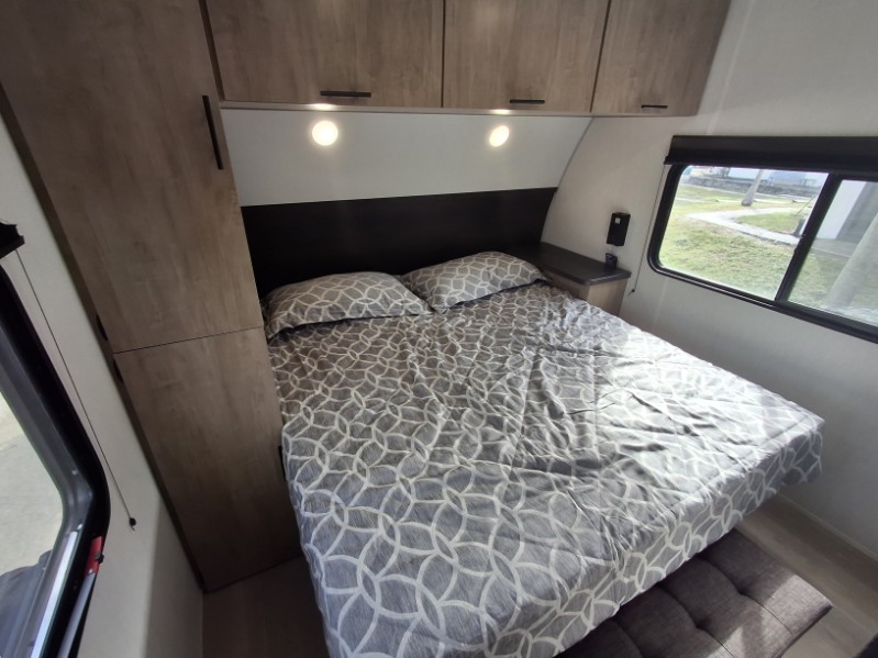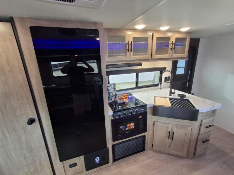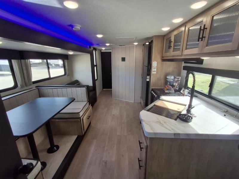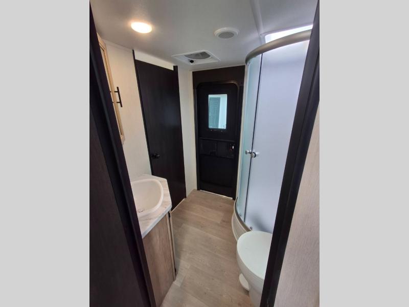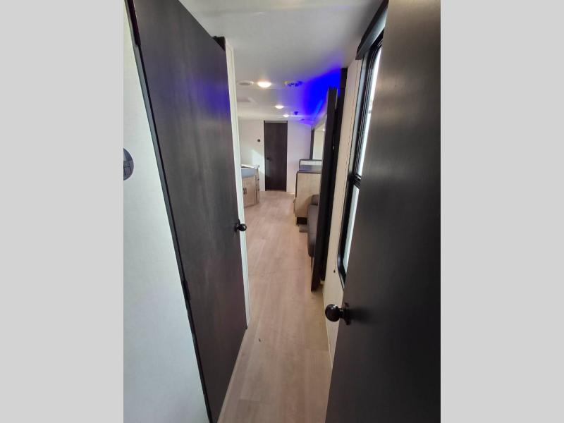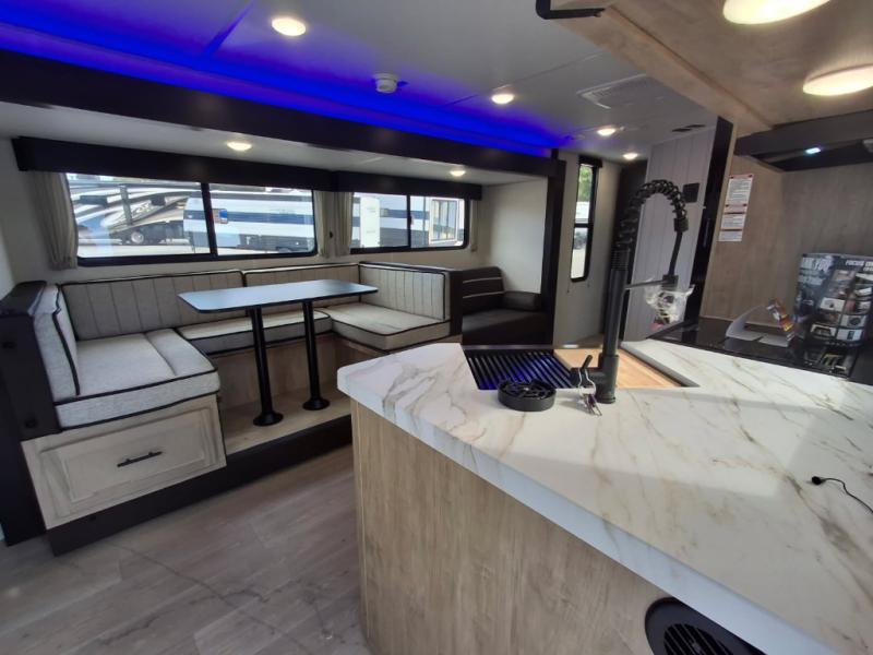 Your larger family will love spending weekends away with this Cherokee Grey Wolf travel trailer as their home away from home. This model offers lots of sleeping space with three bunk beds in the rear private bunkhouse. In the front, there is a master suite with a wardrobe beside RV king bed, and it even has private access to the dual-entry bath. The two entry doors will make accessing the trailer easy for everyone, and you will appreciate the abundant storage throughout this unit including large overhead cabinets, a spacious pantry, and numerous outside storage compartments for all of your outdoor gear. There's even an outside bar & grill!
