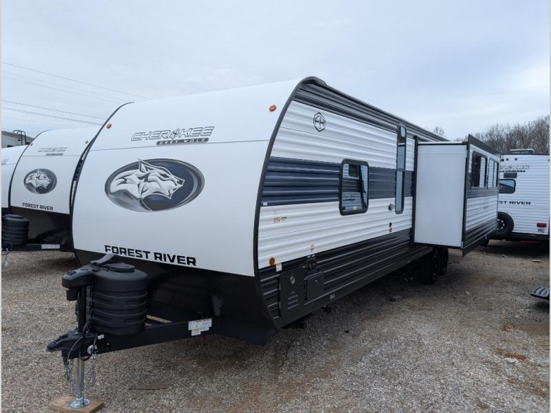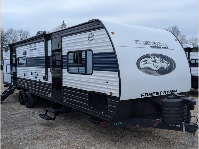 The Cherokee Grey Wolf 29TE by Forest River is a spacious travel trailer designed for families.