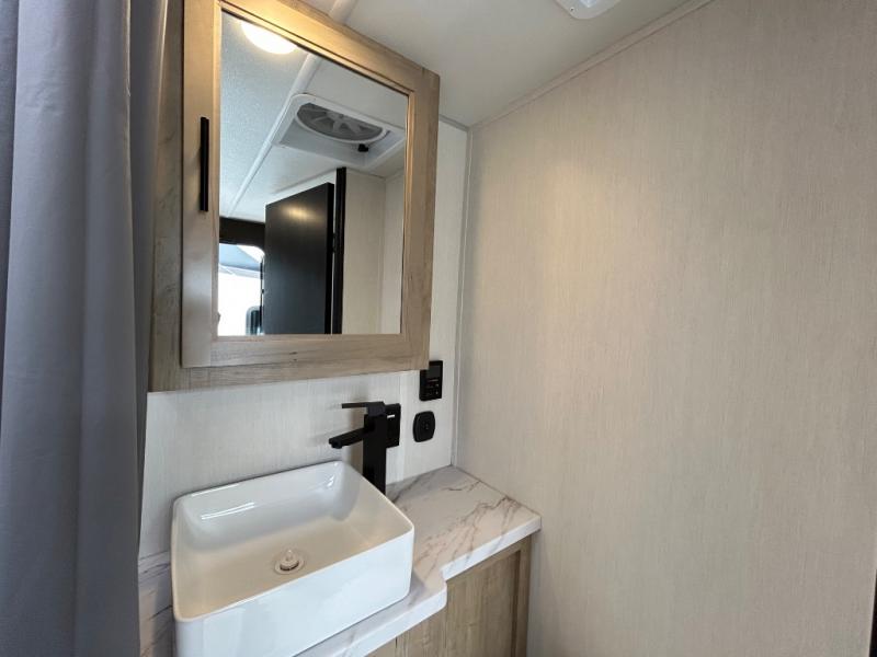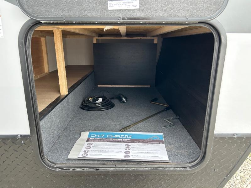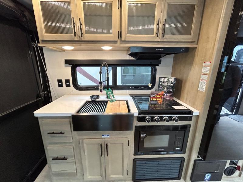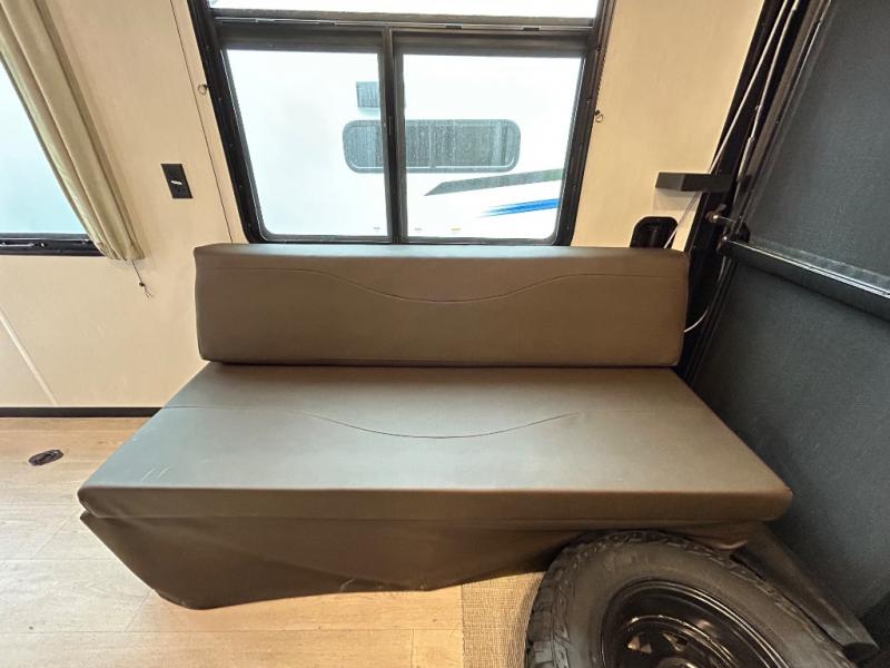You will undoubtedly love this Cherokee Grey Wolf Black Label toy hauler! Because of its ability to have up to 15' 2" of cargo space, you can easily load up the ramp door and head out to your outdoor toy land, and you can bring much more than just your toys since this trailer also comes with exterior storage, a bedside wardrobe, overhead cabinets, an 10-cubic foot refrigerator, and a kitchen pantry. The full bathroom is another feature that is going to allow you to experience a true getaway since you won't need to find public facilities to use while you're gone, and the USB charging stations will allow you to charge your phone inside while you're outside playing.