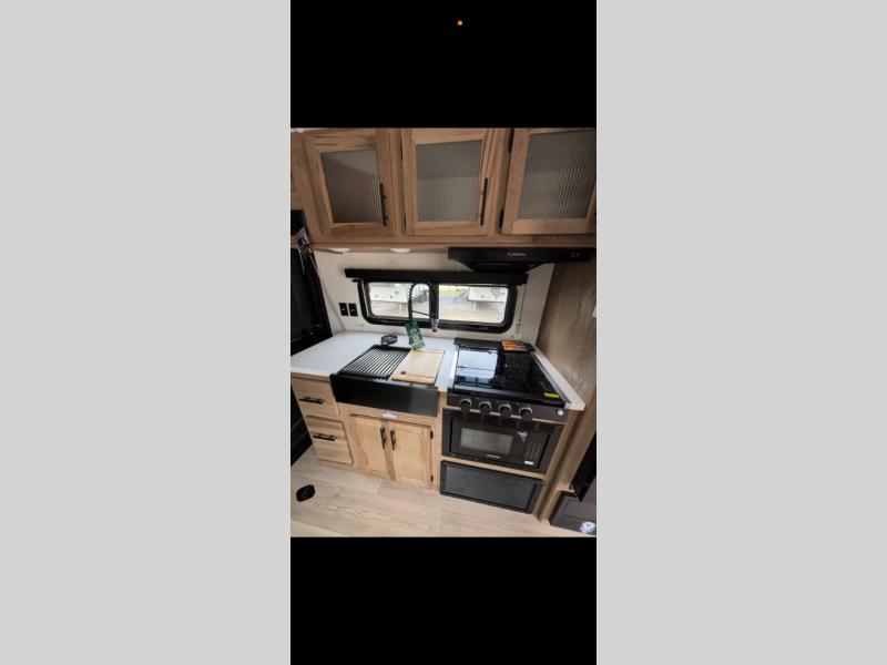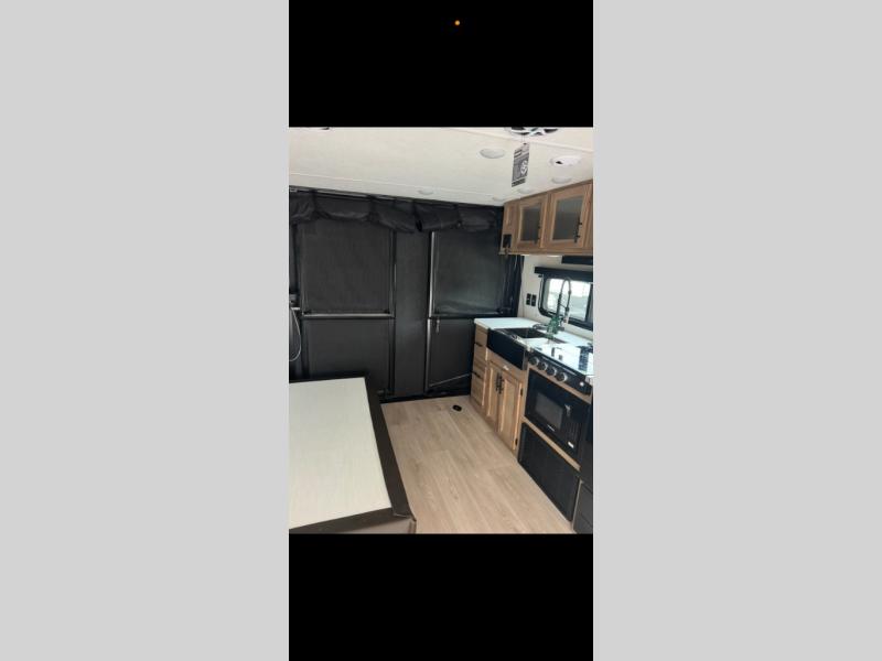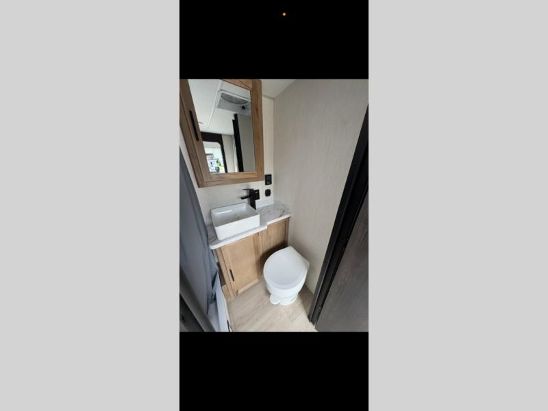 You will undoubtedly love this Cherokee Grey Wolf Black Label toy hauler! Because of its ability to have up to 15' 2" of cargo space, you can easily load up the ramp door and head out to your outdoor toy land, and you can bring much more than just your toys since this trailer also comes with exterior storage, a bedside wardrobe, overhead cabinets, an 10-cubic foot refrigerator, and a kitchen pantry. The full bathroom is another feature that is going to allow you to experience a true getaway since you won't need to find public facilities to use while you're gone, and the USB charging stations will allow you to charge your phone inside while you're outside playing.