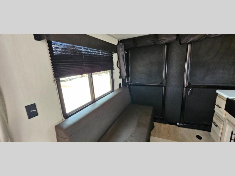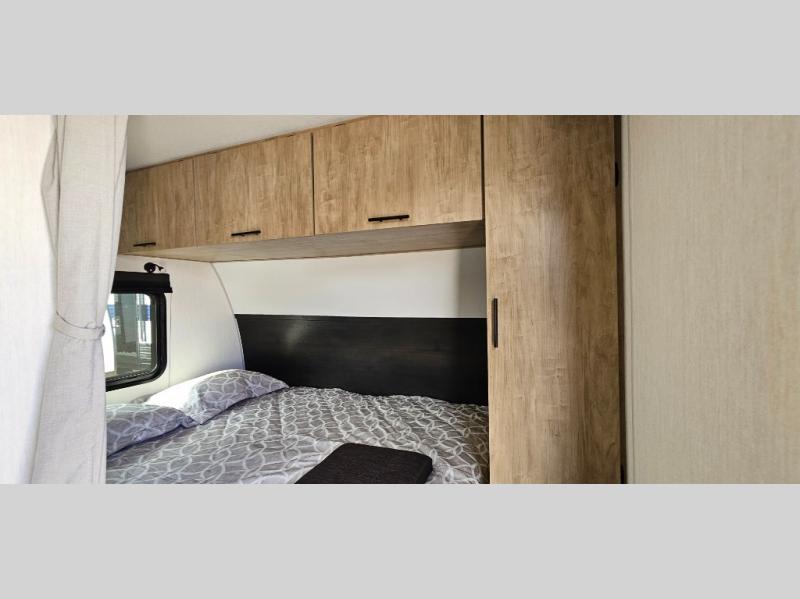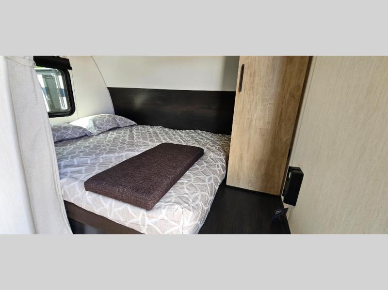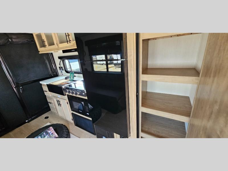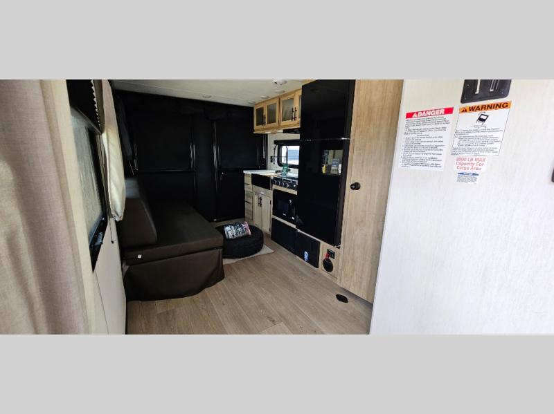 You will undoubtedly love this Cherokee Grey Wolf toy hauler! Because of its ability to have up to 15' 2" of cargo space, you can easily load up the ramp door and head out to your outdoor toy land, and you can bring much more than just your toys since this trailer also comes with exterior storage, a bedside wardrobe, overhead cabinets, an 10-cubic foot refrigerator, and a kitchen pantry. The full bathroom is another feature that is going to allow you to experience a true getaway since you won't need to find public facilities to use while you're gone, and the USB charging stations will allow you to charge your phone inside while you're outside playing.