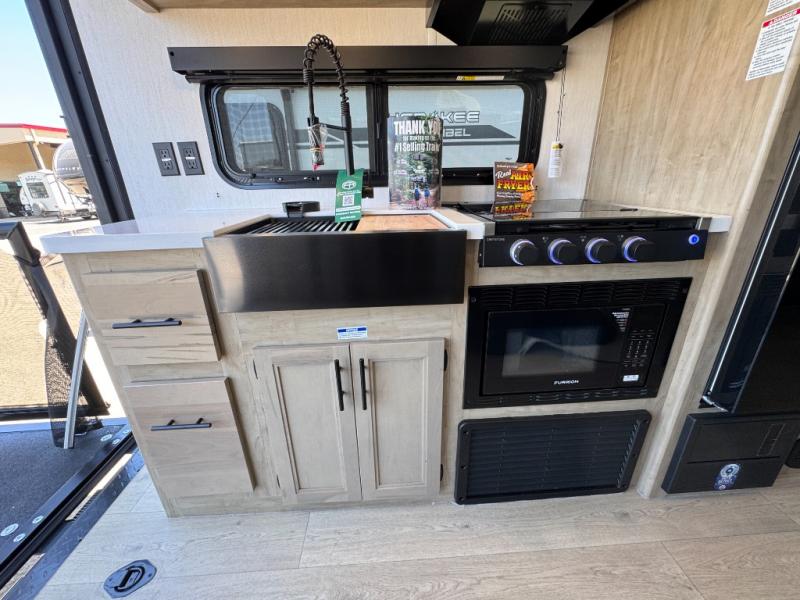 Whether it's a journey that will take you to new locations or a tried-and-true getaway to that favorite and memorable destination, the Forest River Cherokee Grey Wolf Black Label travel trailers and toy haulers are going to make the trip worth it every single time! The Black Label Package includes Thermo-Foil Arctic insulation, hung fiberglass gel coat sided walls, and frameless window package. There are also upgraded solid surface countertops and reading lights, plus designer cushion fabrics to make you feel right at home. You can travel in confidence with the premium wheel package, seamless roofing membrane with heat reflectivity, Power Gear frame technology with space-saver rail design, and Cherokee back-up camera system.