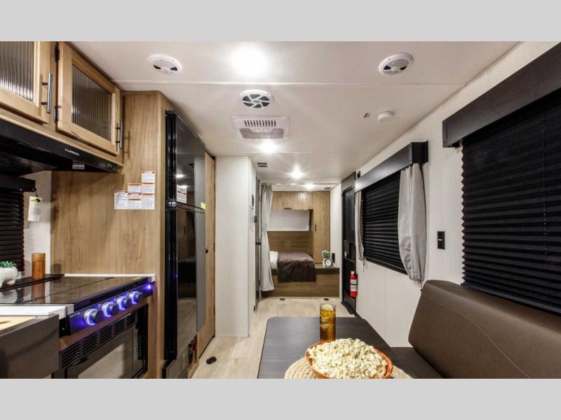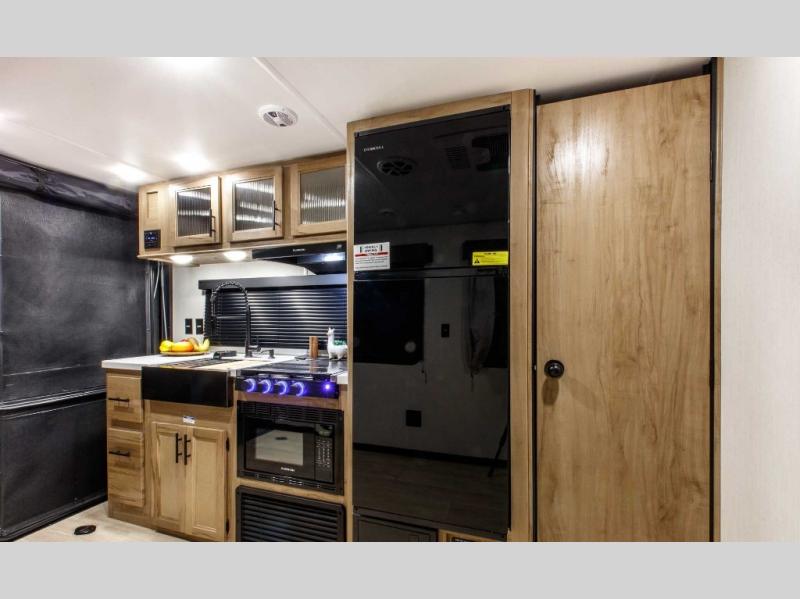 Whether it's a journey that will take you to new locations or a tried-and-true getaway to that favorite and memorable destination, the Forest River Cherokee Grey Wolf Black Label travel trailers and toy haulers are going to make the trip worth it every single time! The Black Label Package includes Thermo-Foil Arctic insulation, hung fiberglass gel coat sided walls, and frameless window package. There are also upgraded solid surface countertops and reading lights, plus designer cushion fabrics to make you feel right at home. You can travel in confidence with the premium wheel package, seamless roofing membrane with heat reflectivity, Power Gear frame technology with space-saver rail design, and Cherokee back-up camera system.
