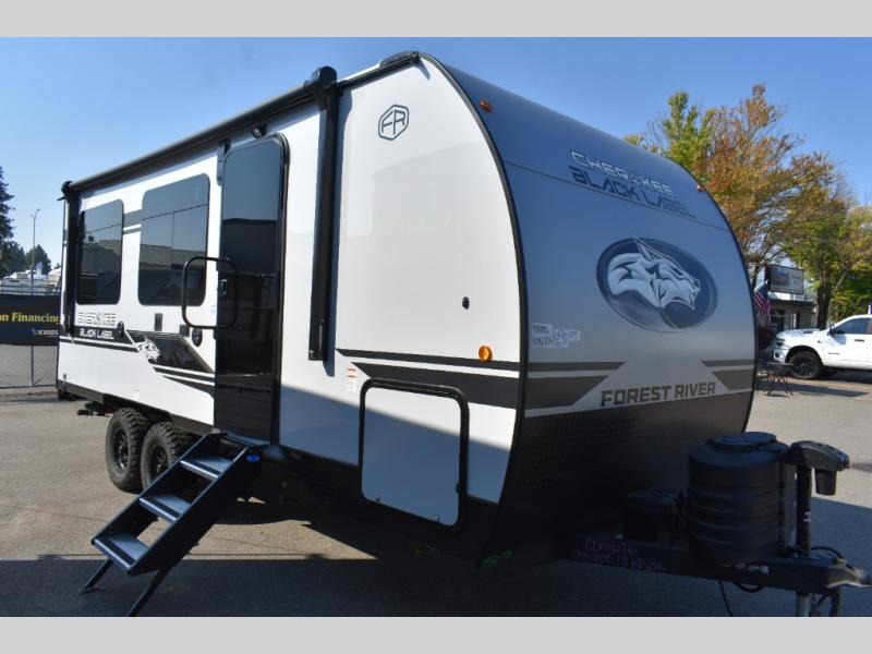 The Cherokee Grey Wolf Black Label by Forest River feature distinctive features, at-home comforts, and durable construction materials so you can enjoy your RV for years to come, plus they are outstandingly affordable! You can choose between travel trailers, toy haulers, and even fish houses, depending on the camping style you prefer. The Black Label upgrade features fiberglass gel coat walls, frameless windows, upgraded solid surface countertops and more!