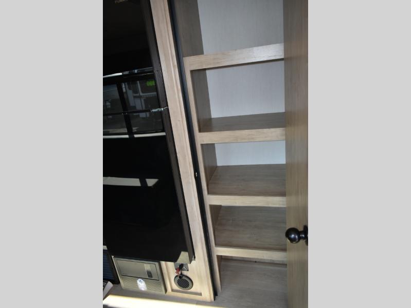 You will undoubtedly love this Cherokee Grey Wolf Black Label toy hauler! Because of its ability to have up to 15' 2" of cargo space, you can easily load up the ramp door and head out to your outdoor toy land, and you can bring much more than just your toys since this trailer also comes with exterior storage, a bedside wardrobe, overhead cabinets, a refrigerator, and a kitchen pantry. The full bathroom is another feature that is going to allow you to experience a true getaway since you won't need to find public facilities to use while you're gone, and the USB charging stations will allow you to charge your phone inside while you're outside playing.