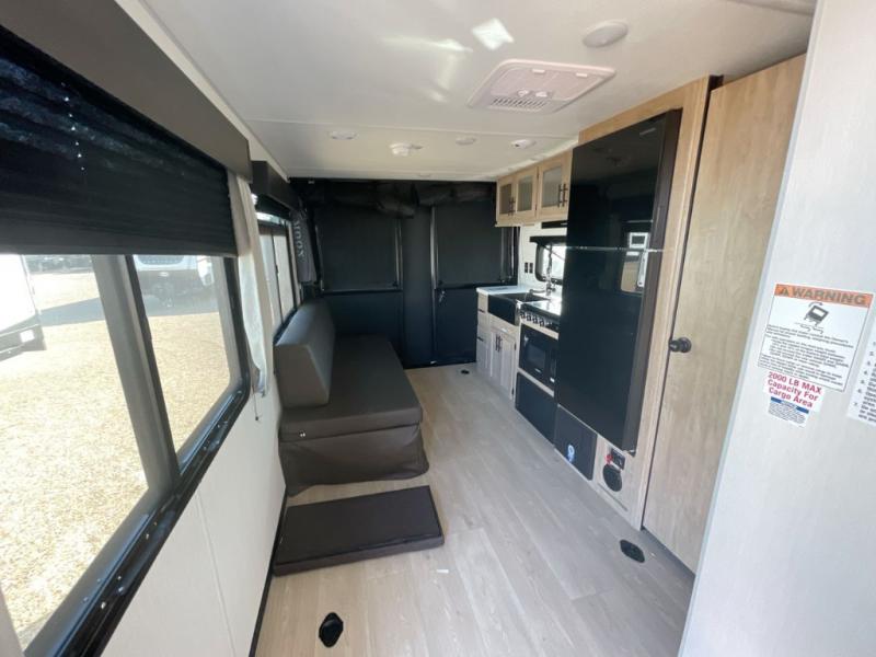You will undoubtedly love this Cherokee Grey Wolf Black Label toy hauler! Because of its ability to have up to 15' 2" of cargo space, you can easily load up the ramp door and head out to your outdoor toy land, and you can bring much more than just your toys since this trailer also comes with exterior storage, a bedside wardrobe, overhead cabinets, an 10-cubic foot refrigerator, and a kitchen pantry. The full bathroom is another feature that is going to allow you to experience a true getaway since you won't need to find public facilities to use while you're gone, and the USB charging stations will allow you to charge your phone inside while you're outside playing.
