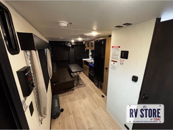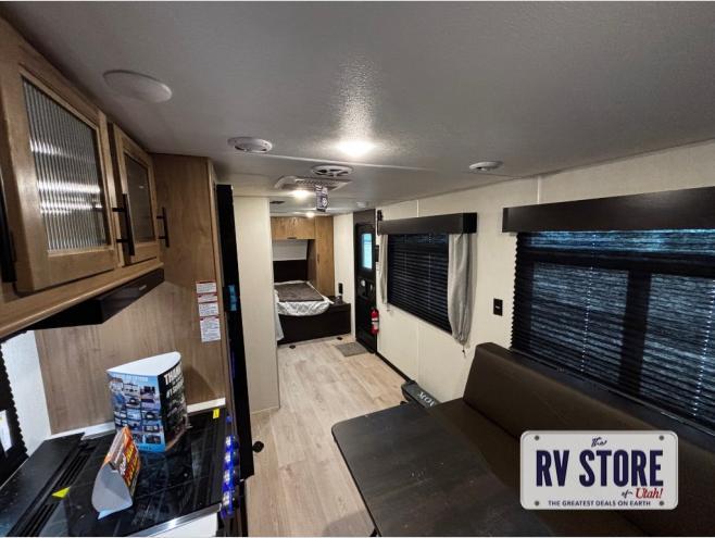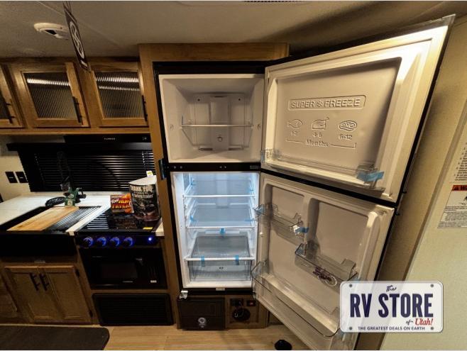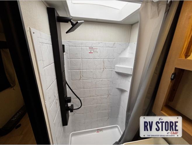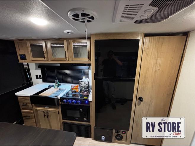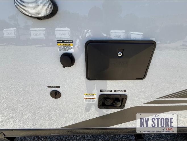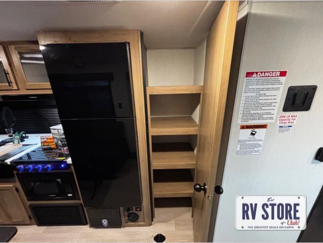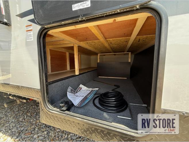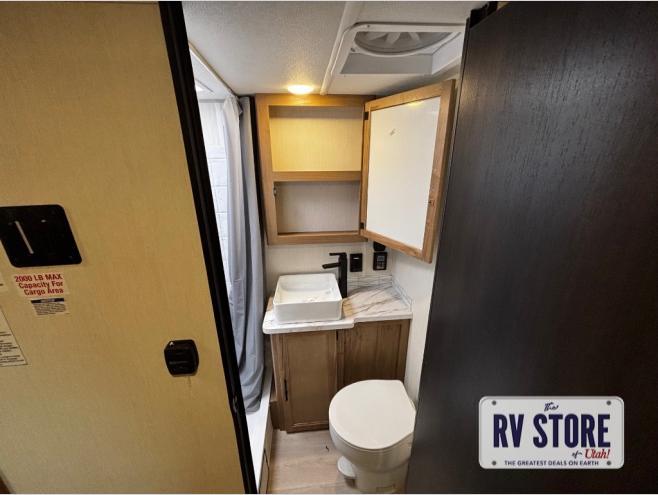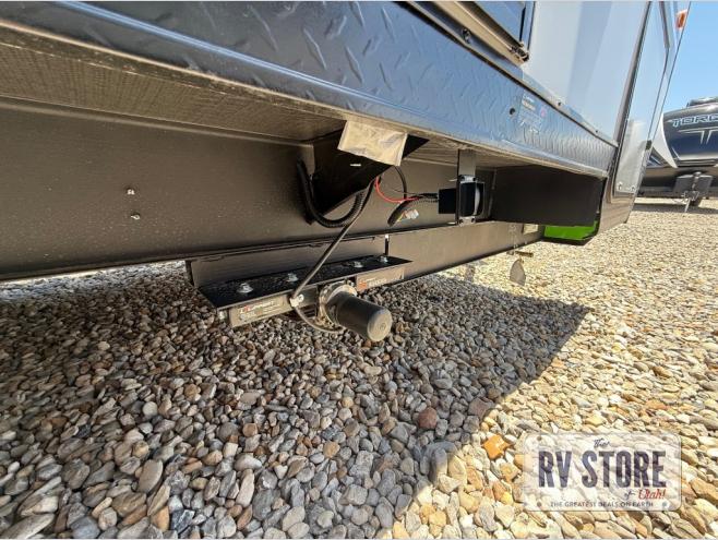 You will undoubtedly love this Cherokee Grey Wolf Black Label toy hauler! Because of its ability to have up to 15' 2" of cargo space, you can easily load up the ramp door and head out to your outdoor toy land, and you can bring much more than just your toys since this trailer also comes with exterior storage, a bedside wardrobe, overhead cabinets, a refrigerator, and a kitchen pantry. The full bathroom is another feature that is going to allow you to experience a true getaway since you won't need to find public facilities to use while you're gone, and the USB charging stations will allow you to charge your phone inside while you're outside playing.