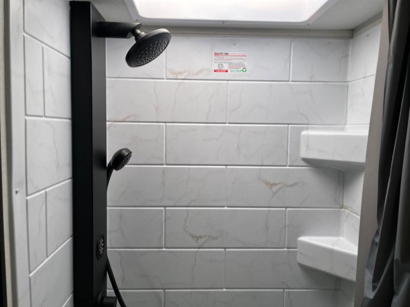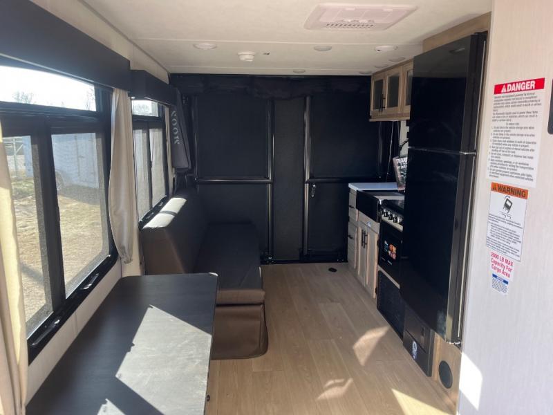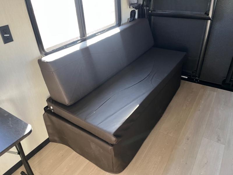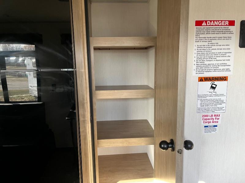 You will undoubtedly love this Cherokee Grey Wolf Black Label toy hauler! Because of its ability to have up to 15' 2" of cargo space, you can easily load up the ramp door and head out to your outdoor toy land, and you can bring much more than just your toys since this trailer also comes with exterior storage, a bedside wardrobe, overhead cabinets, a refrigerator, and a kitchen pantry. The full bathroom is another feature that is going to allow you to experience a true getaway since you won't need to find public facilities to use while you're gone, and the USB charging stations will allow you to charge your phone inside while you're outside playing.