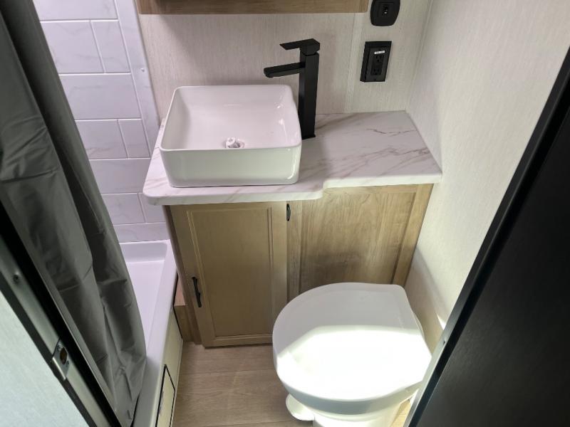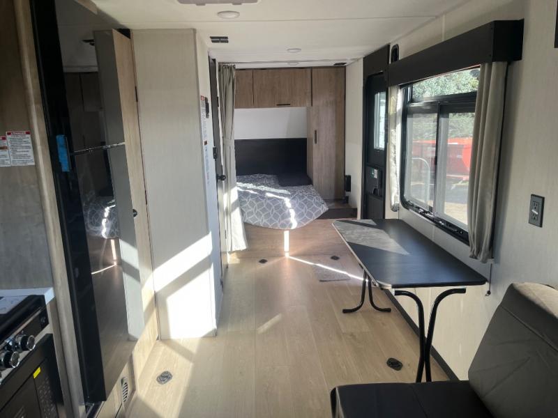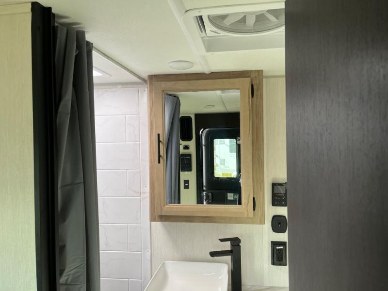 You will undoubtedly love this Cherokee Grey Wolf Black Label toy hauler! Because of its ability to have up to 15' 2" of cargo space, you can easily load up the ramp door and head out to your outdoor toy land, and you can bring much more than just your toys since this trailer also comes with exterior storage, a bedside wardrobe, overhead cabinets, a refrigerator, and a kitchen pantry. The full bathroom is another feature that is going to allow you to experience a true getaway since you won't need to find public facilities to use while you're gone, and the USB charging stations will allow you to charge your phone inside while you're outside playing.