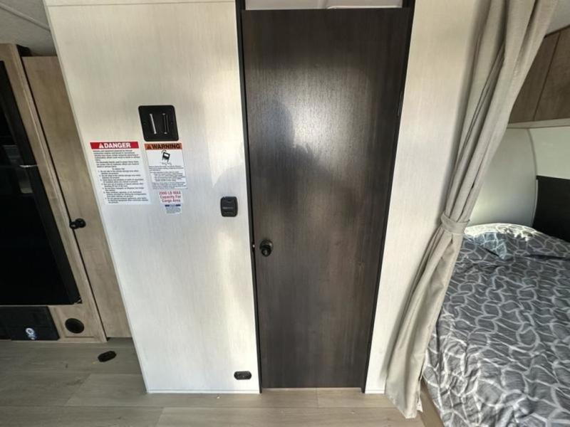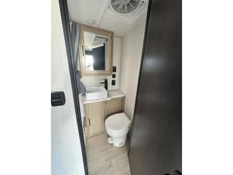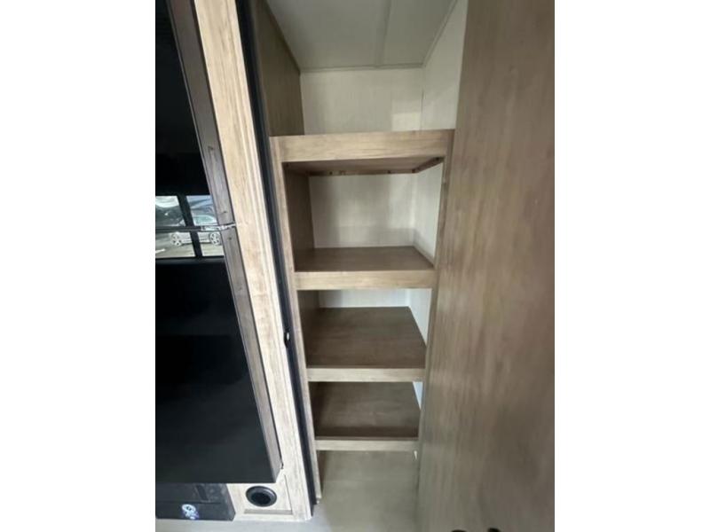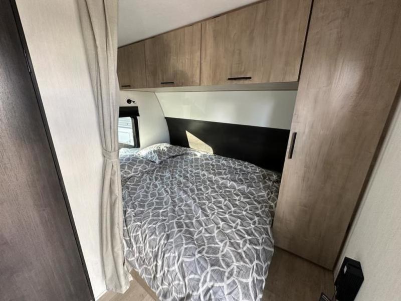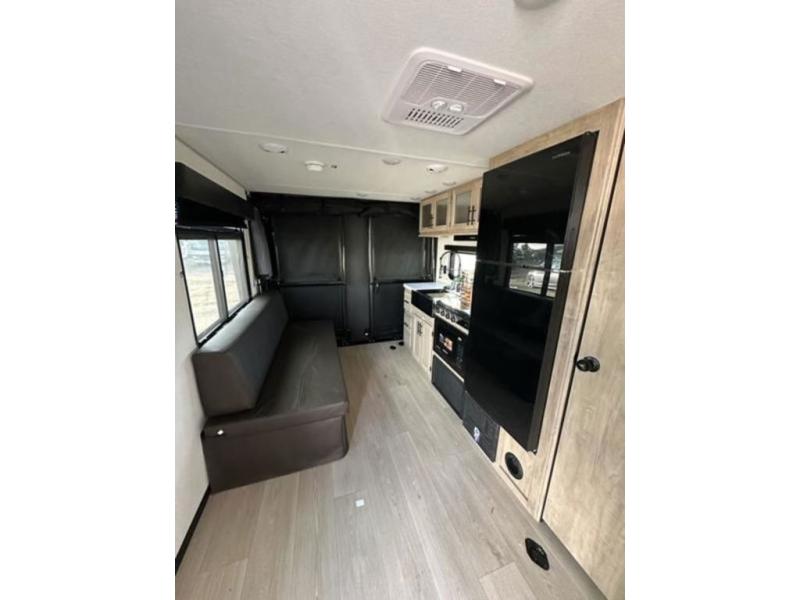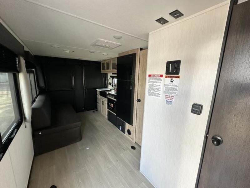 You will undoubtedly love this Cherokee Grey Wolf Black Label toy hauler! Because of its ability to have up to 15' 2" of cargo space, you can easily load up the ramp door and head out to your outdoor toy land, and you can bring much more than just your toys since this trailer also comes with exterior storage, a bedside wardrobe, overhead cabinets, a refrigerator, and a kitchen pantry. The full bathroom is another feature that is going to allow you to experience a true getaway since you won't need to find public facilities to use while you're gone, and the USB charging stations will allow you to charge your phone inside while you're outside playing.