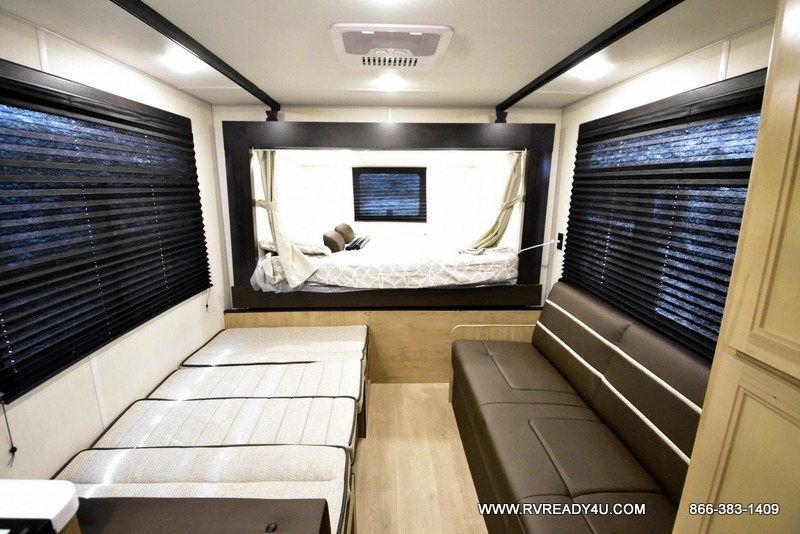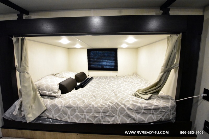 A family of seven or eight can enjoy many outdoor adventures in this Cherokee Grey Wolf Black Label travel trailer which features two queen beds and a bunk above the front bed. With the rear queen bed slide, you gain sleeping space without having additional tow length added. You will find large overhead cabinets inside, a pantry to bring along your favorite snacks, and a wardrobe for keeping your clothes wrinkle free. There is a booth dinette for you to enjoy your meals at or play some card games, and there is also a sofa for those who just want to sit back and watch. A conveniently located bathroom that sits directly across from the main entry makes it easy to access from outside. There is also a nice 15' awning for creating additional living space so that you can enjoy the outdoors whether rain or shine!