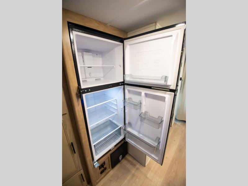 Time spent at the campground in this well designed travel trailer will be time well spent! The front bedroom includes a walk-around RV king bed, a bedroom wardrobe plus USB ports to charge your phone or laptop. You can whip up breakfast in the modern kitchen that includes an air fryer, then dine around the U-shaped dinette with a panoramic window. This area can also double as sleeping space for one to two guests as well! A pantry will let you stock up on snacks and the TV mount means you can bring along a television if you want to enjoy movie nights. There is also a full bath with a tub/shower where you can freshen up each day!