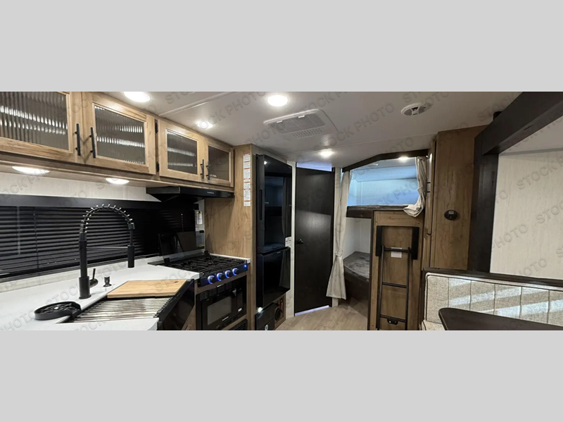 You will love the space provided in this dual entry Cherokee Grey Wolf Black Label travel trailer that has double-size bunks! The rear entry door leads right into the full bath allowing easy access from outside when you need to use the bathroom while you're enjoying the great outdoors. The large U-shaped dinette slide will not only seat everyone comfortably for a meal or a game, but since it also slides out, it opens up the interior even more to give you plenty of space for foot traffic. For all of your outdoor gear, you will find the outside storage compartments handy for stowing away your things when not in use. While the kids enjoy their bunk beds, you will enjoy a good night's rest on the RV king bed with wardrobes on either side up in the front private bedroom!