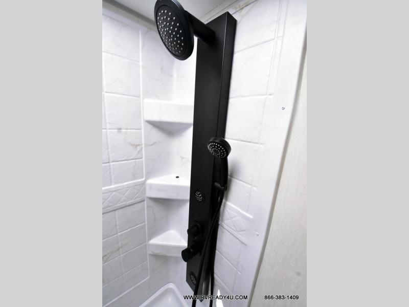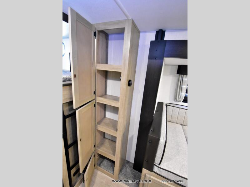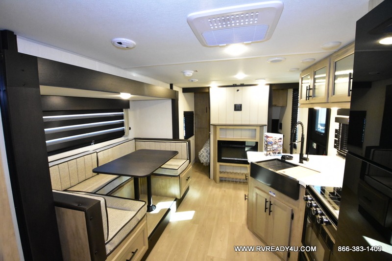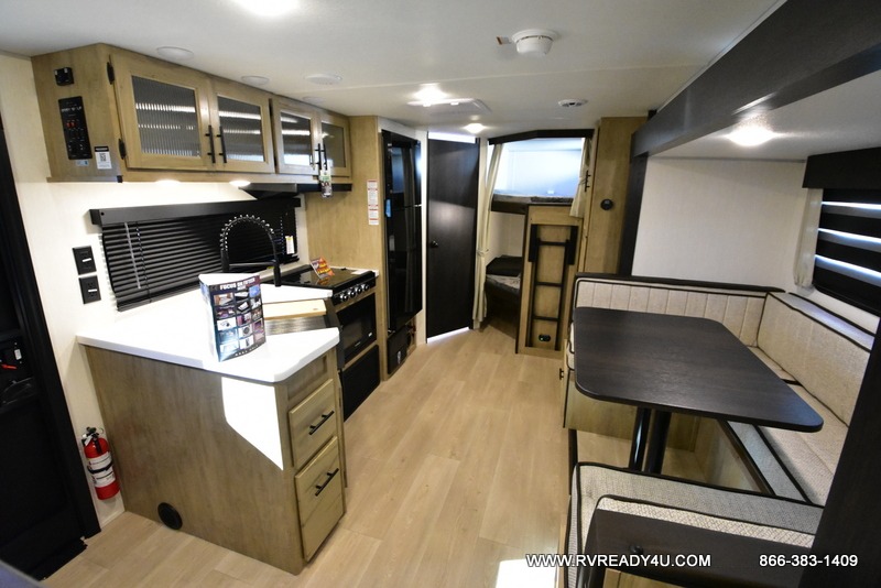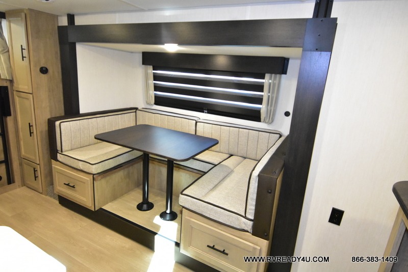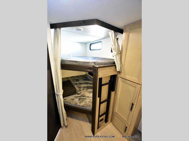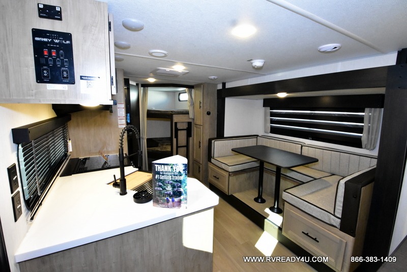 You will love the space provided in this dual entry Cherokee Grey Wolf Black Label travel trailer that has double-size bunks! The rear entry door leads right into the full bath allowing easy access from outside when you need to use the bathroom while you're enjoying the great outdoors. The large U-shaped dinette slide will not only seat everyone comfortably for a meal or a game, but since it also slides out, it opens up the interior even more to give you plenty of space for foot traffic. For all of your outdoor gear, you will find the outside storage compartments handy for stowing away your things when not in use. While the kids enjoy their bunk beds, you will enjoy a good night's rest on the RV king bed with a wardrobe in the front private bedroom!