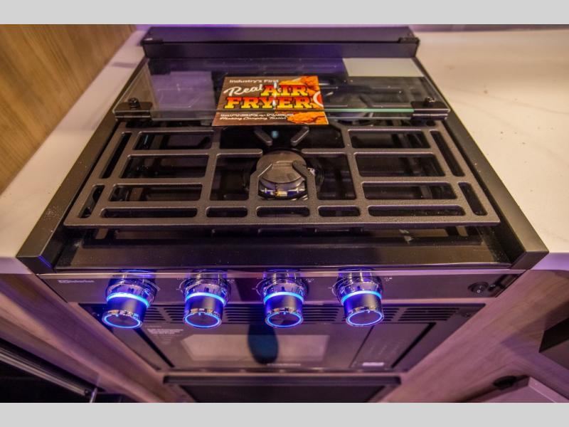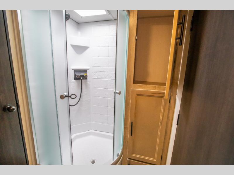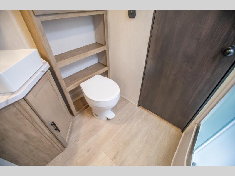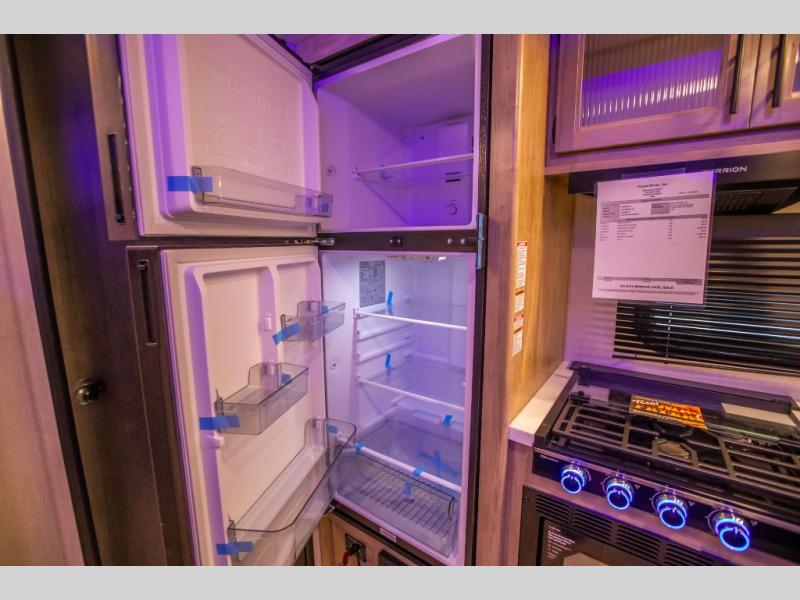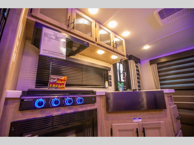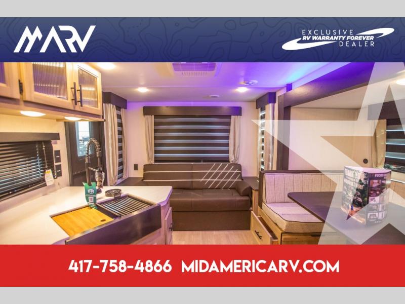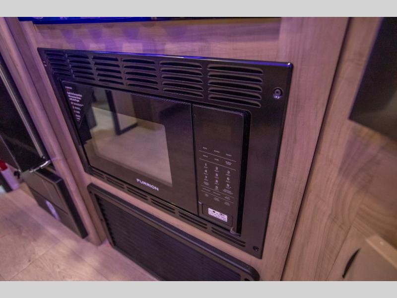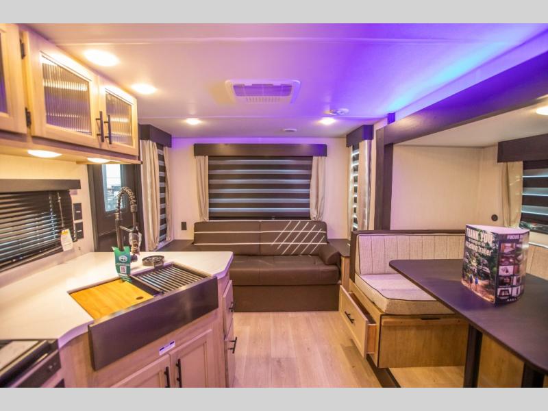 This Cherokee Grey Wolf Black Label travel trailer is perfect for your small family and will leave you planning your next outing before you are back from your current weekend away! You will find all of the comforts you need with plenty of livable space including a U-shaped dinette slide. There is also a sofa for more seating when company arrives, and there are end tables on either side to prevent spills. A spacious walk-through bath leads to a front private bedroom where you will enjoy a great night's rest on a comfortable RV king bed. You will find ample storage for clothing in the wardrobes that are above handy nightstands for your personal things. There are even lights mounted above the bed on each side which makes it easy to read a couple of chapters before drifting off to sleep.