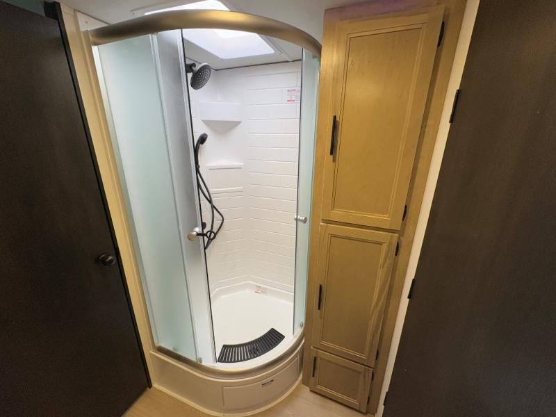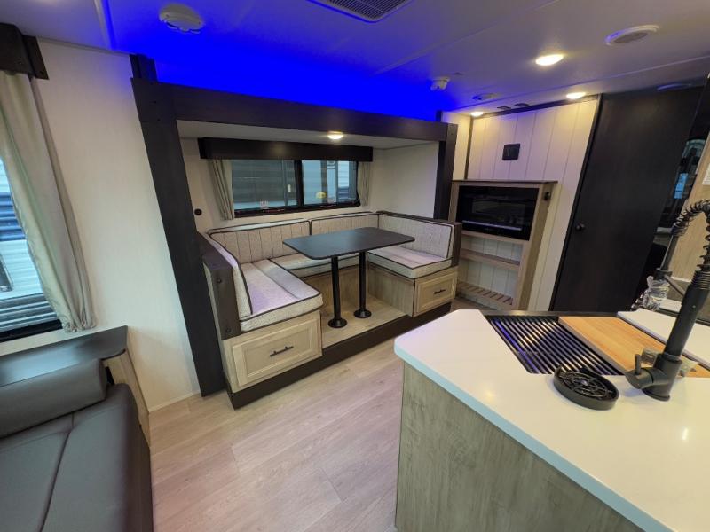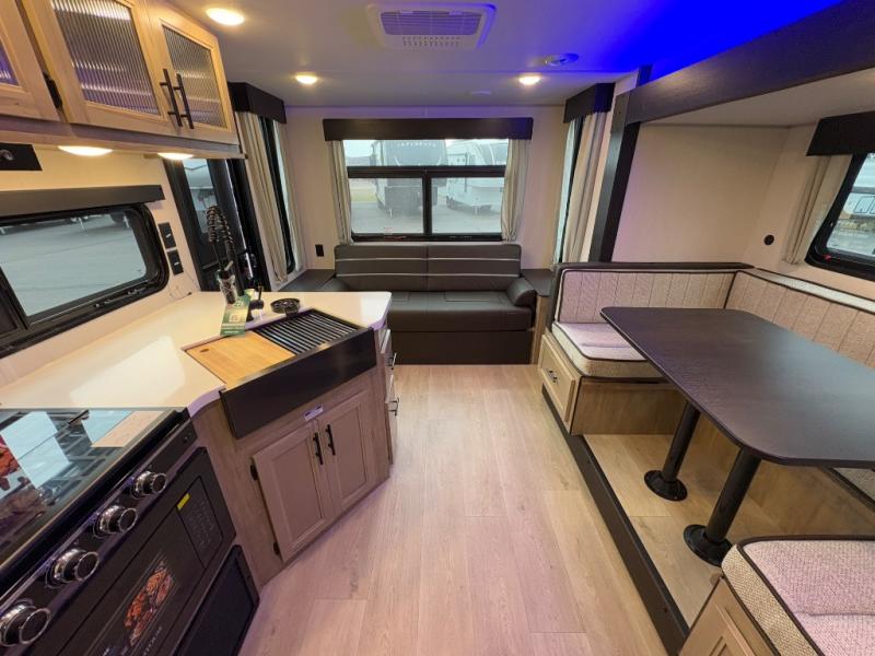 This Cherokee Grey Wolf Black Label travel trailer is perfect for your small family and will leave you planning your next outing before you are back from your current weekend away! You will find all of the comforts you need with plenty of livable space including a U-shaped dinette slide. There is also a sofa for more seating when company arrives, and there are end tables on either side to prevent spills. A spacious walk-through bath leads to a front private bedroom where you will enjoy a great night's rest on a comfortable RV king bed.