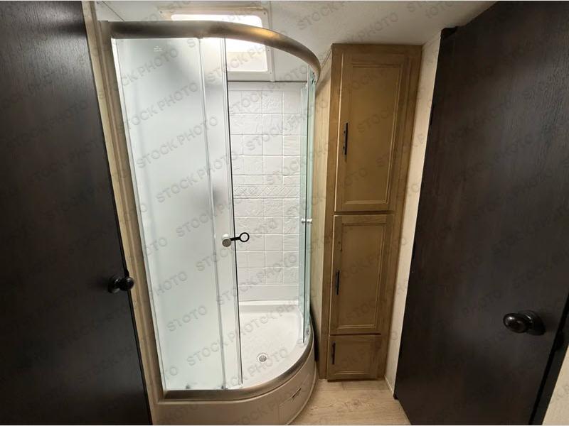 This Cherokee Grey Wolf Black Label travel trailer is perfect for your small family and will leave you planning your next outing before you are back from your current weekend away! You will find all of the comforts you need with plenty of livable space including a U-shaped dinette slide. There is also a sofa for more seating when company arrives, and there are end tables on either side to prevent spills. A spacious walk-through bath leads to a front private bedroom where you will enjoy a great night's rest on a comfortable RV king bed.