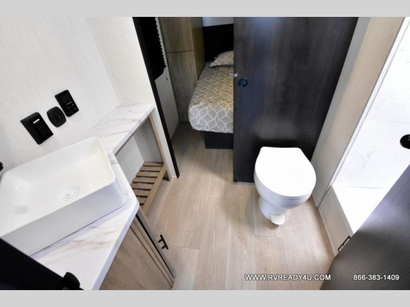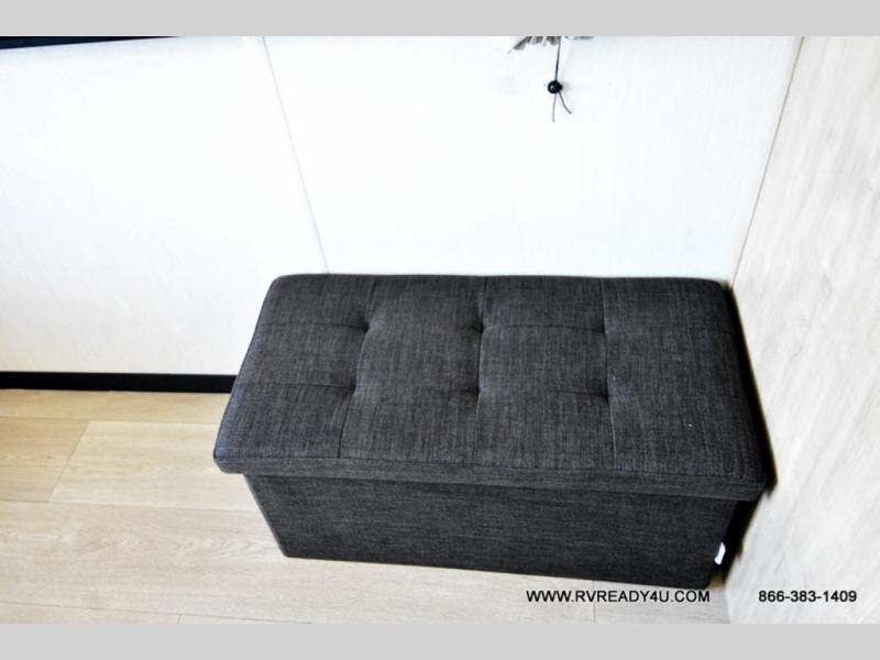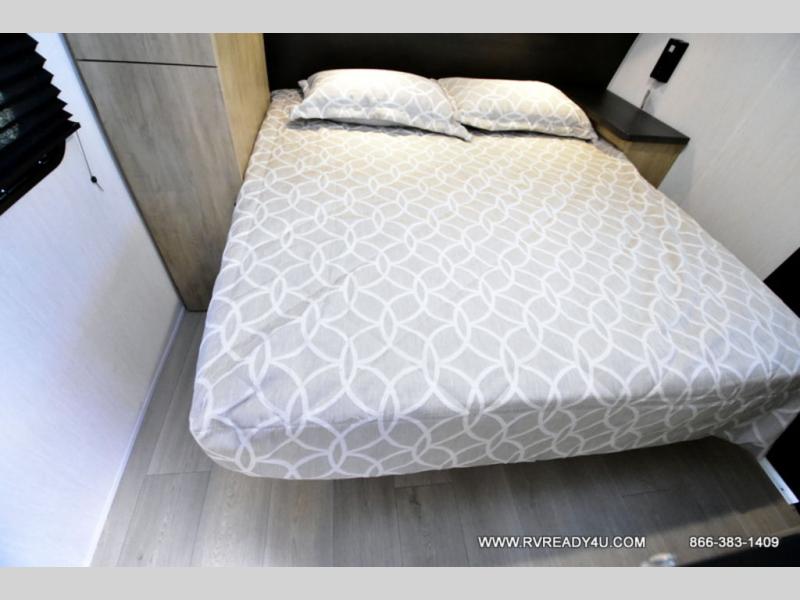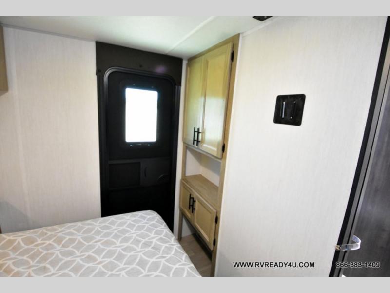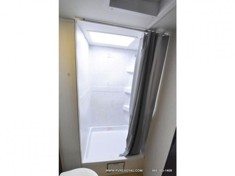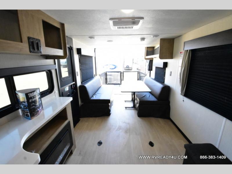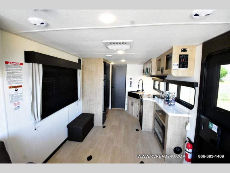 This dual entry toy hauler will allow you to enter in through the main living area or the front master bedroom for convenience! There is a walk-through bath that will be easily accessible for everyone, and there is plenty of storage space for personal belongings. Head to the full kitchen to prepare a home cooked meal, or head outdoors to enjoy the mini kitchen. There is also an outside TV mount if you brought a TV along, and a 15' power awning to provide shade. You can easily unload your toys using the ramp door, then relax on the fold-down sofas with a removable tale.