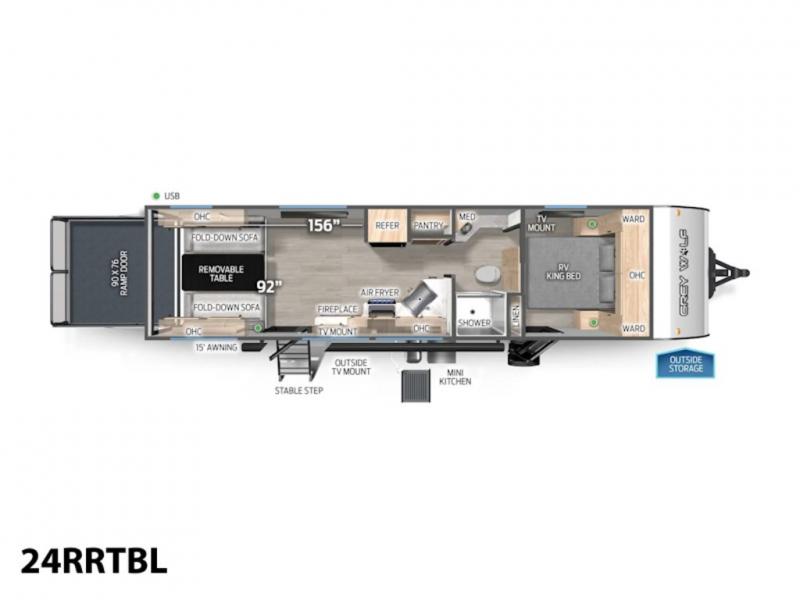 Forest River Cherokee Grey Wolf Black Label toy hauler 24RRTBL highlights: