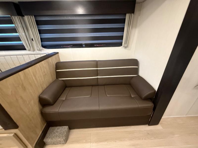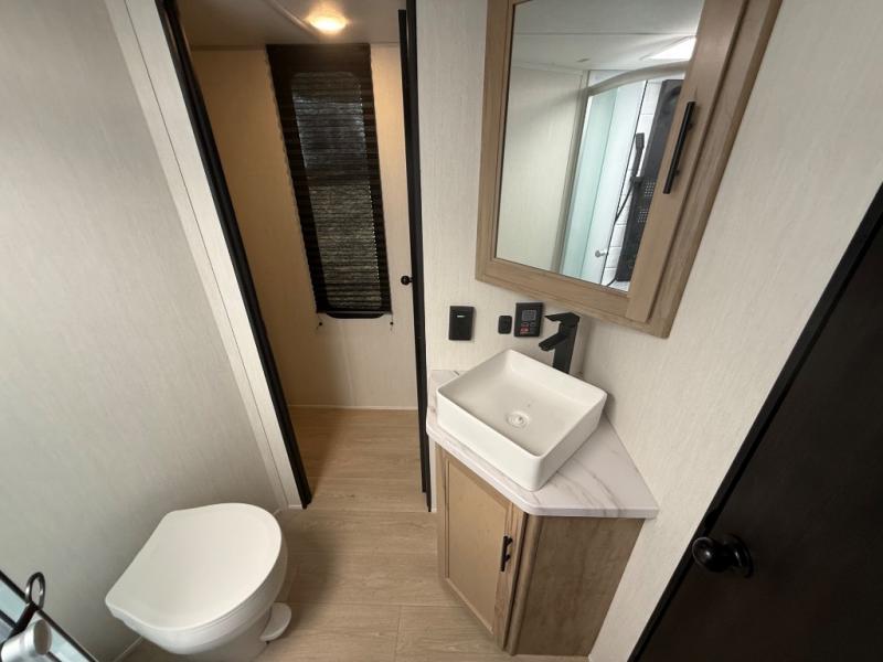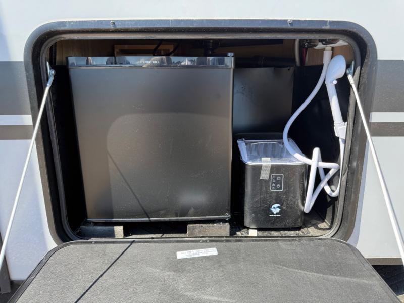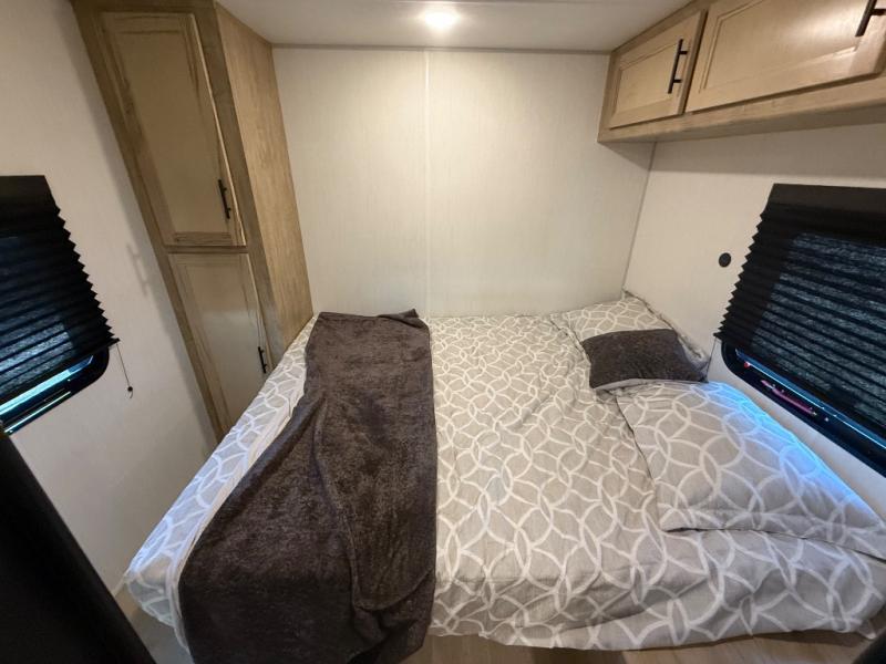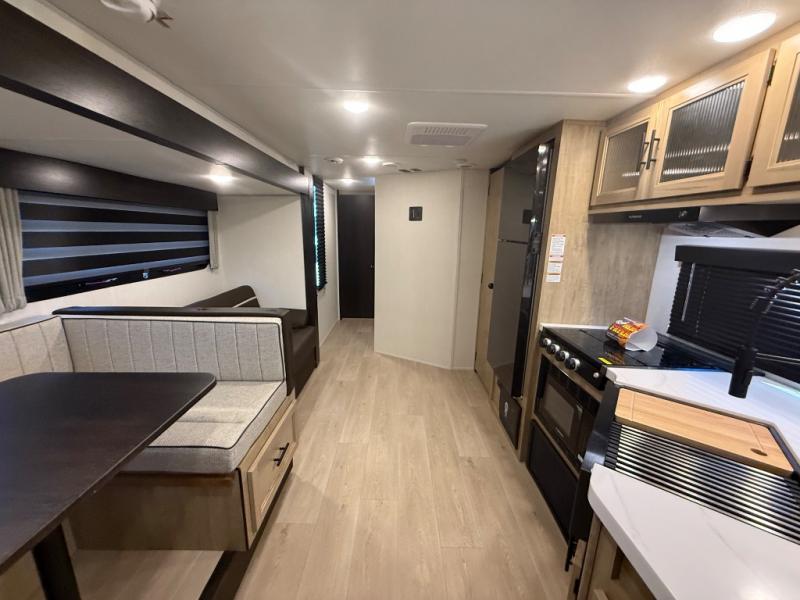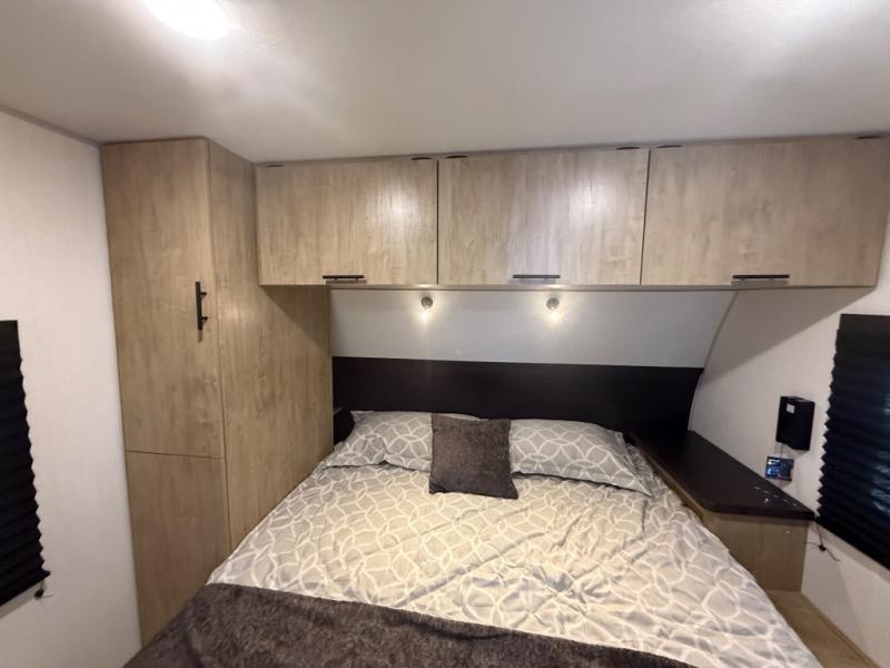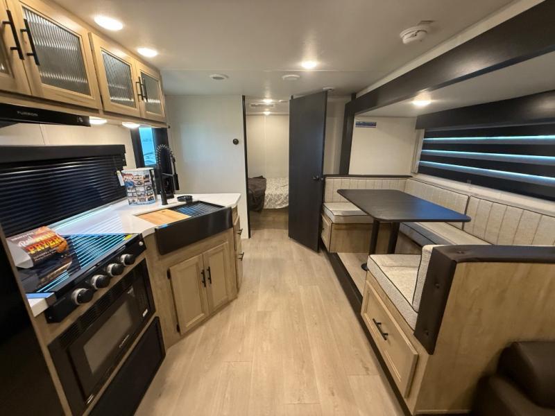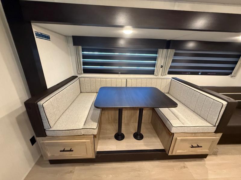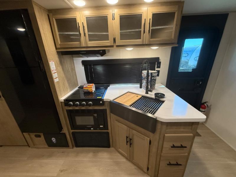 You will have such a great time making memories in this Cherokee Grey Wolf Black Label travel trailer! This amazing trailer not only has a master suite up front, but it also has another private bedroom in the back which means that both you and the rest of your fellow campers will sleep peacefully and privately. There is also a U-shaped dinette and sofa on the large slide in the main living area so that if you have anyone else traveling with you, they can also have a place to sleep. A full kitchen with an air fryer will help you whip up a hearty meal to replenish your tired bodies, and a oversized pantry will hold onto your snacks and sweets for later.