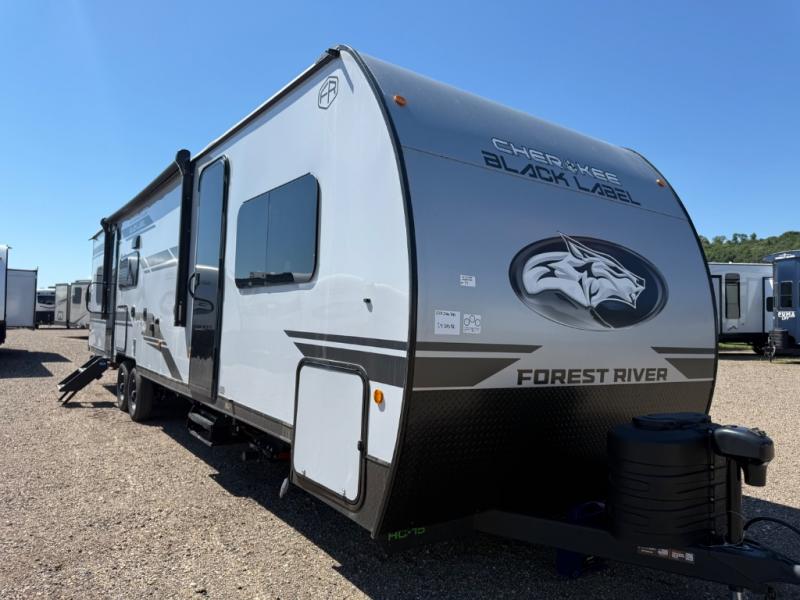 Whether it's a journey that will take you to new locations or a tried-and-true getaway to that favorite and memorable destination, the Forest River Cherokee Grey Wolf Black Label travel trailers and toy haulers are going to make the trip worth it every single time! The Black Label Package includes Thermo-Foil Arctic insulation, hung fiberglass gel coat sided walls, and frameless window package. There are also upgraded solid surface countertops and reading lights, plus designer cushion fabrics to make you feel right at home. You can travel in confidence with the premium wheel package, seamless roofing membrane with heat reflectivity, Power Gear frame technology with space-saver rail design, and Cherokee back-up camera system.