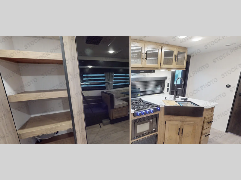 Your larger family will love spending weekends away with this Cherokee Grey Wolf Black Label travel trailer as their home away from home. This model offers lots of sleeping space with three bunk beds in the rear private bunkhouse. In the front, there is a master suite with wardrobes and nightstands on either side of the RV king bed, and it even has private access to the dual-entry bath. The two entry doors will make accessing the trailer easy for everyone, and you will appreciate the abundant storage throughout this unit including large overhead cabinets, an oversized pantry, and numerous outside storage compartments for all of your outdoor gear. You also even have an outside bar & grill!
