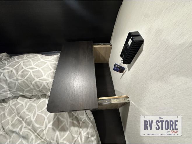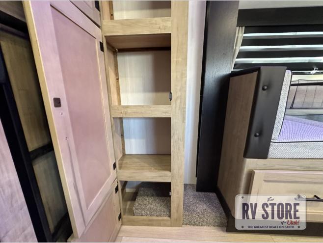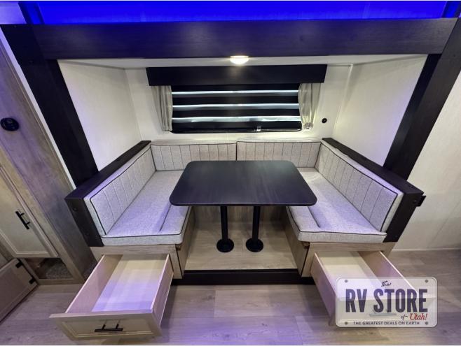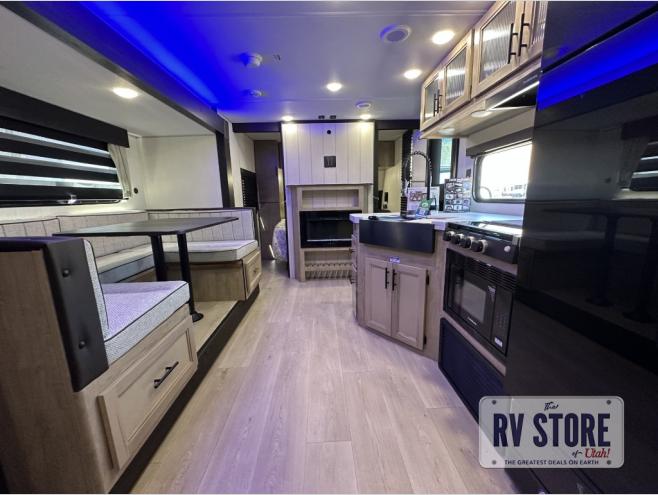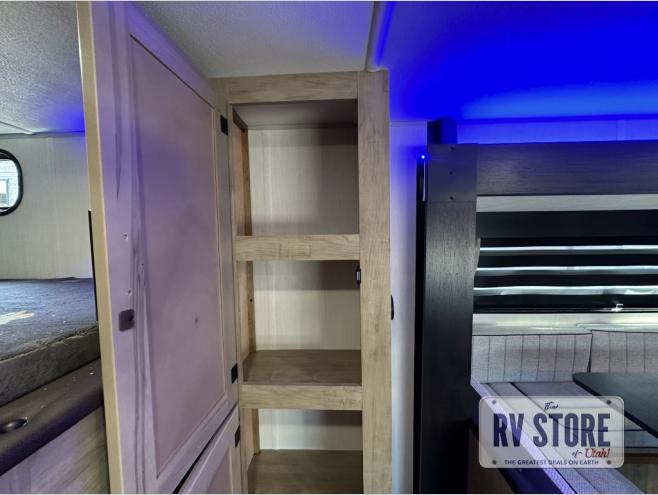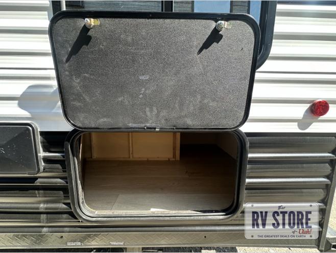 You will love the space provided in this dual entry Cherokee Grey Wolf travel trailer that has double-size bunks! The rear entry door leads right into the full bath allowing easy access from outside when you need to use the bathroom while you're enjoying the great outdoors. The large U-shaped dinette slide will not only seat everyone comfortably for a meal or a game, but since it also slides out, it opens up the interior even more to give you plenty of space for foot traffic. For all of your outdoor gear, you will find the outside storage compartments handy for stowing away your things when not in use. While the kids enjoy their bunk beds, you will enjoy a good night's rest in your RV king bed with wardrobes on either side up in the front private bedroom!