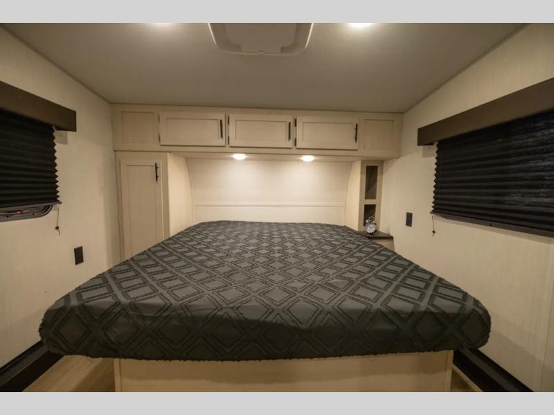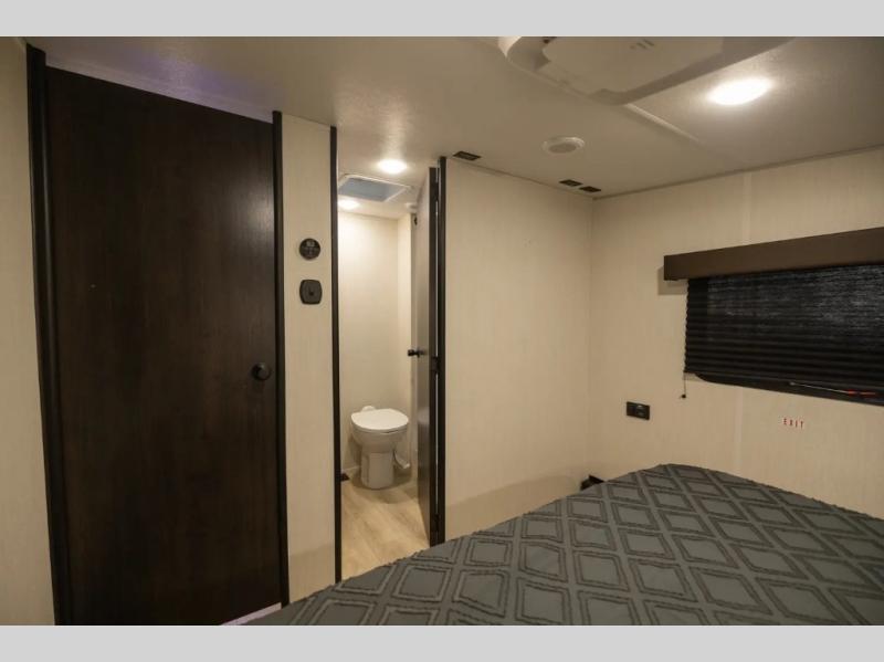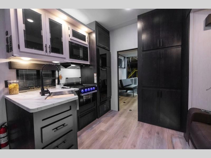 With any Cherokee Rouge SUT toy hauler travel trailer or fifth wheel by Forest River you can bring along your favorite ride-on toys, while still enjoying at-home comforts. Each one is built with a seamless roofing membrane with heat reflectivity and an armored underbelly tank enclosure for added strength and durability, and the 8' 6" wide body construction means you can bring along your favorite ride-on toys. Inside, you'll find a 1000 watt microwave and a three burner cooktop with an oven, seamless countertops, plus zebra shades that filters light and are blackout capable. These toy haulers also include 12V heat pads on all the holding tanks, a 15,000 BTU A/C unit, and many more amenities to make camping easier than ever.