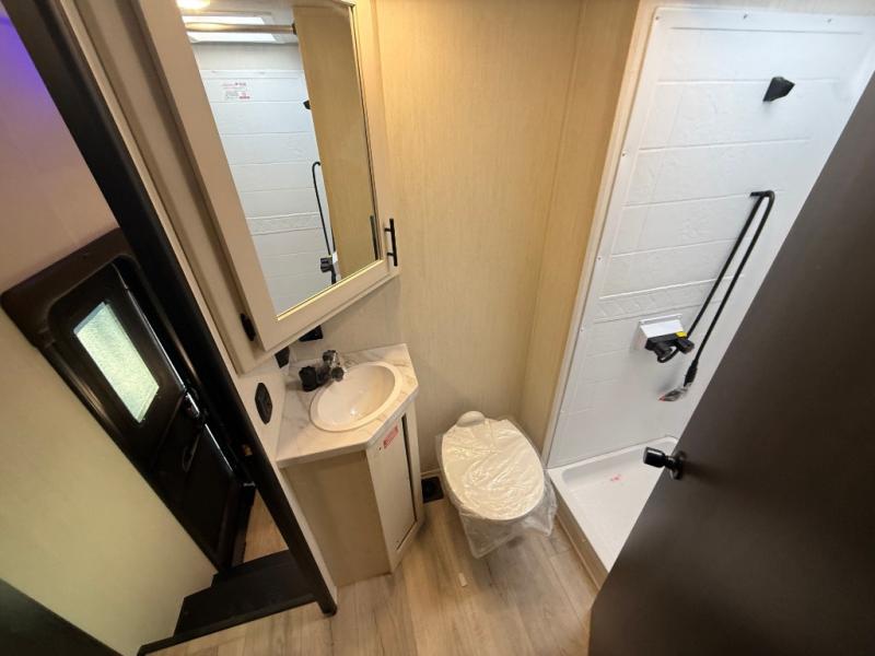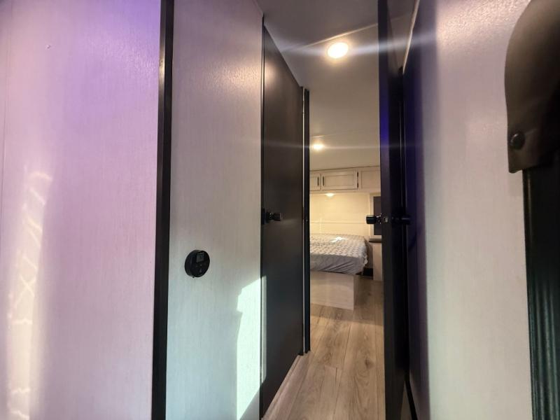 With any Cherokee Rouge SUT toy hauler travel trailer or fifth wheel by Forest River you can bring along your favorite ride-on toys, while still enjoying at-home comforts. Each one is built with a seamless roofing membrane with heat reflectivity and an armored underbelly tank enclosure for added strength and durability, and the 8' 6" wide body construction means you can bring along your favorite ride-on toys. Inside, you'll find a 1000 watt microwave and a three burner cooktop with an oven, seamless countertops, plus zebra shades that filters light and are blackout capable. These toy haulers also include 12V heat pads on all the holding tanks, a 15,000 BTU A/C unit, and many more amenities to make camping easier than ever.
