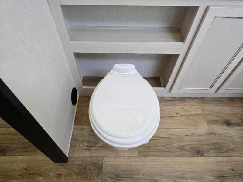 You will experience luxurious camping trips at an affordable price with any one of these Forest River Cherokee Sabre fifth wheels! These models are durable and ready to travel anytime of the year thanks to features like the high-gloss gel-coat front cap with LED lighting, the PVC roof membrane, and the forced air underbelly with enclosed gate valves. The electric auto-leveling system makes setting up easy and safe, and the adjustable power awning with LED lighting will create an inviting outdoor living space. Each model includes a universal docking station which includes a black tank flush and an outside shower, and adjustable stable steps for you to enter and exit the unit safely. Inside, you will love the design of the ambient accent lighting in the living area, the real wood lumbercore cabinetry, and the linoleum flooring!