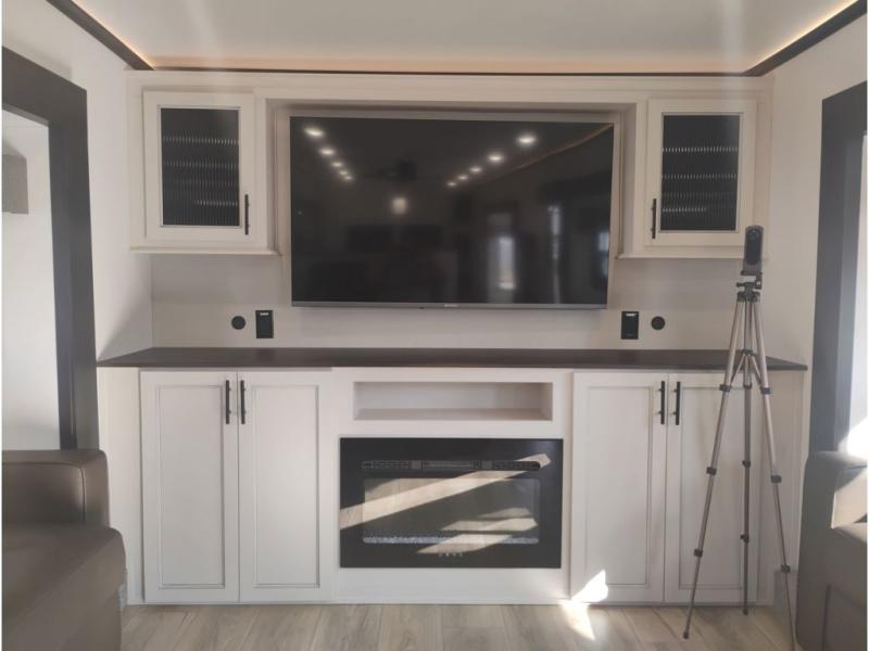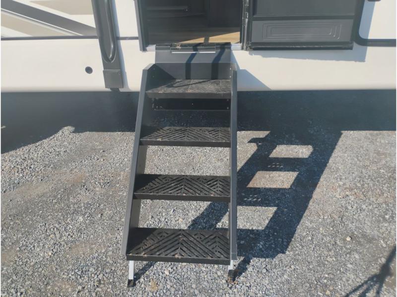 You will experience luxurious camping trips at an affordable price with any one of these Forest River Cherokee Sabre fifth wheels! These models are durable and ready to travel anytime of the year thanks to features like the high-gloss gel-coat front cap with LED lighting, the PVC roof membrane, and the forced air underbelly with enclosed gate valves. The electric auto-leveling system makes setting up easy and safe, and the adjustable power awning with LED lighting will create an inviting outdoor living space. Each model includes a universal docking station which includes a black tank flush and an outside shower, and adjustable stable steps for you to enter and exit the unit safely. Inside, you will love the design of the ambient accent lighting in the living area, the real wood lumbercore cabinetry, and the linoleum flooring!