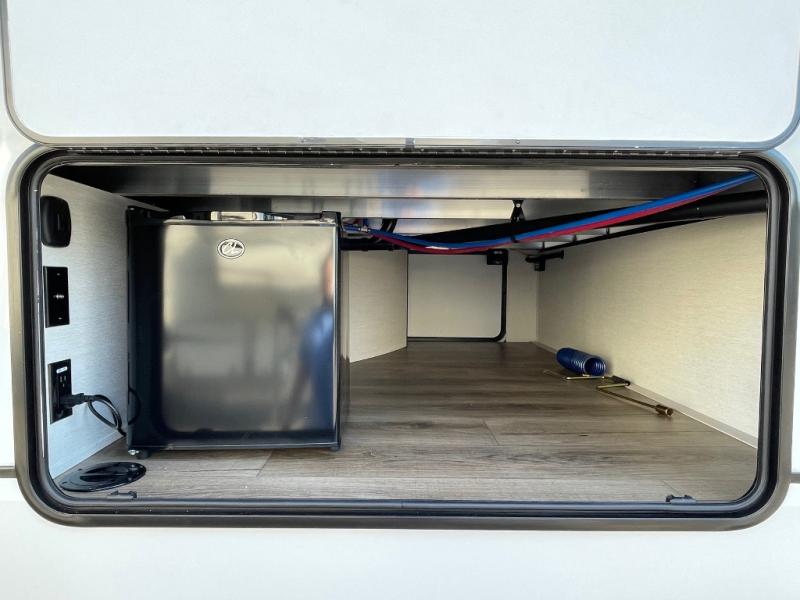 You will experience luxurious camping trips at an affordable price with any one of these Forest River Cherokee Sabre fifth wheels! These models are durable and ready to travel anytime of the year thanks to features like the high-gloss gel-coat front cap with LED lighting, the PVC roof membrane, and the forced air underbelly with enclosed gate valves. The electric auto-leveling system makes setting up easy and safe, and the adjustable power awning with LED lighting will create an inviting outdoor living space. Each model includes a universal docking station which includes a black tank flush and an outside shower, and adjustable stable steps for you to enter and exit the unit safely. Inside, you will love the design of the ambient accent lighting in the living area, the real wood lumbercore cabinetry, and the linoleum flooring!