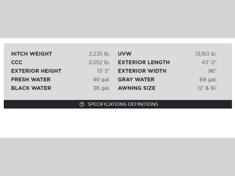 | Awning Info | 12' and 16' Adjustable Power with LED Lighting |