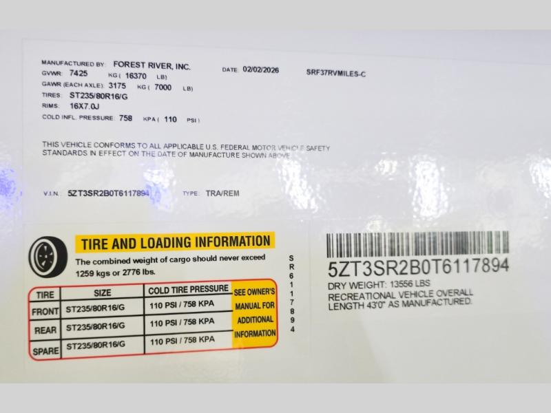 New 2026 Forest River RV Cherokee Sabre 37RVMILES Fifth Wheel