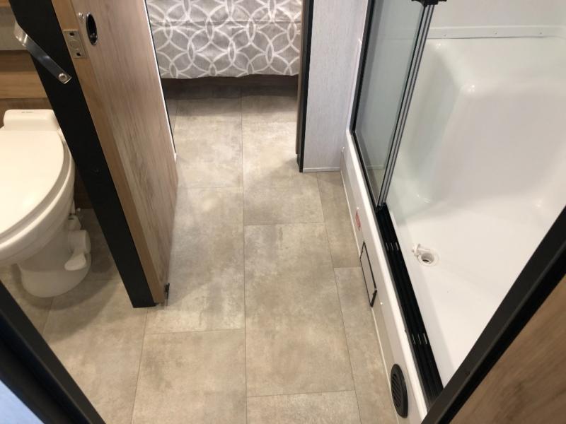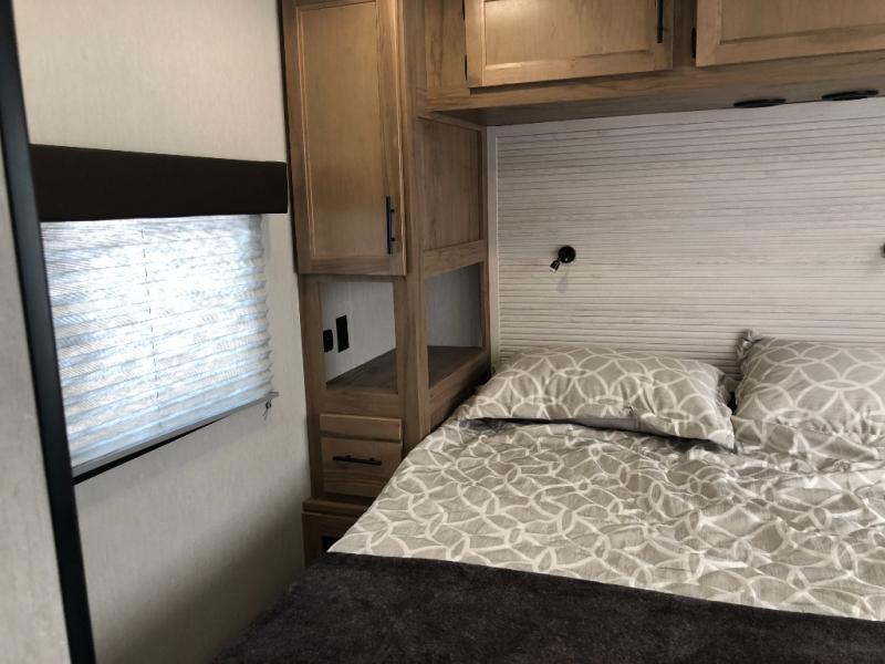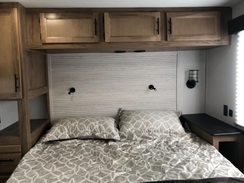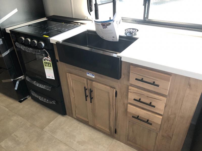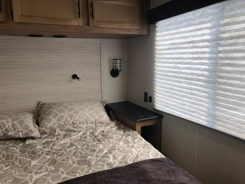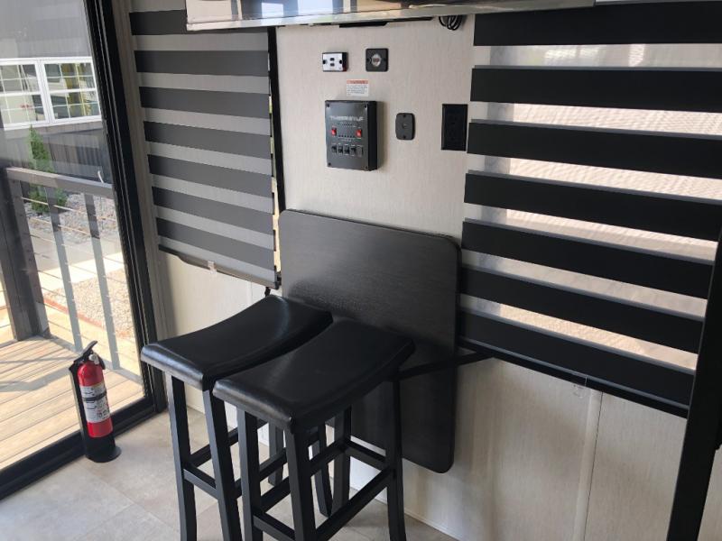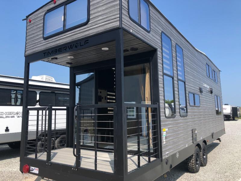 Enjoy comforts of home wherever you decide to roam in a Timberwolf destination trailer by Forest River. The seamless roofing membrane with heat reflectivity and power gear frame technology provide a durable foundation to your RV. You will also appreciate the exclusive solar thermo controlled reflective tinted safety glass windows, tire pressure monitors, and an on-demand tankless water heater to make extended stays easier than ever. Inside, the night shades will provide your crew with privacy, while the LED lights illuminate your space. There are also seamless countertops, along with a premium bedding ensemble and comforter, USB charging stations, a supersized central A/C unit, and many more comforts!