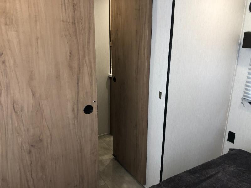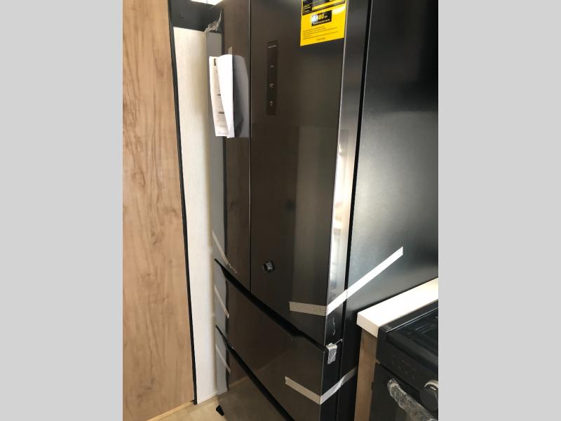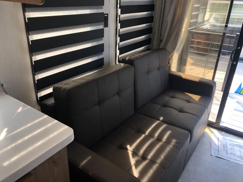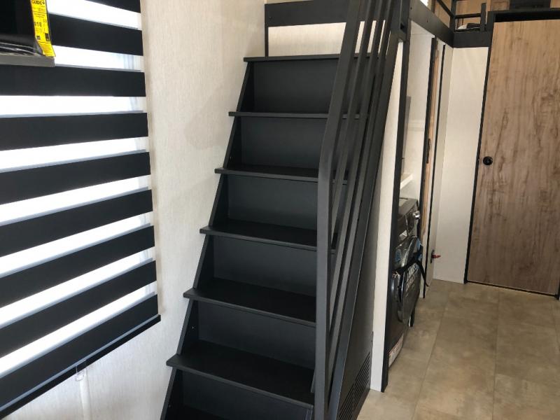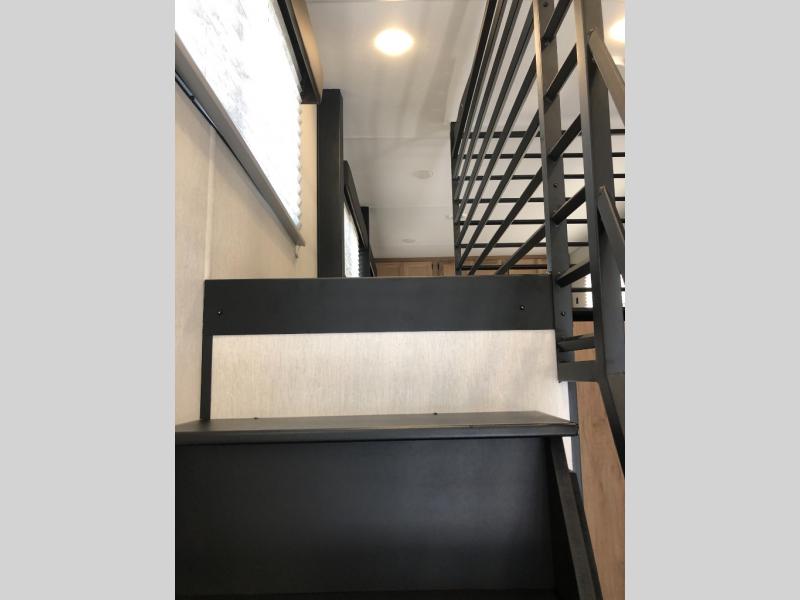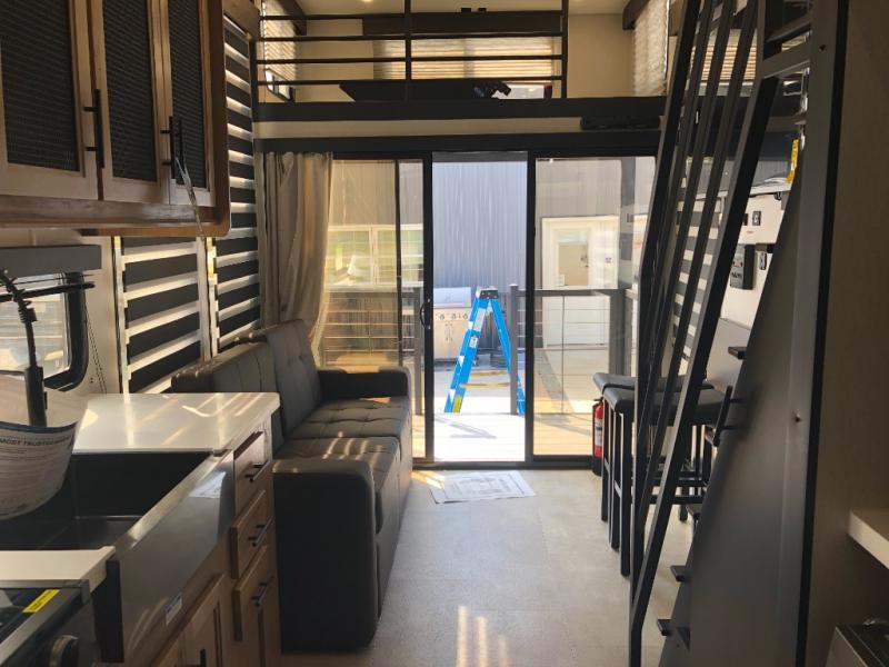 This model is similar to 16ML but larger! A bigger bathroom, king bed in the lower master, and a queen bed plus a twin bunk mat in the front loft. There is an 18 cu. ft. refrigerator so you can stock up for a week long vacation, a hide-a-bed sofa that can transform into added sleeping for guests, and a high top table with two stools to dine at. A ladder allows access into the upper front loft that is over the covered patio. The bathroom below is split with a shower on one side, and a private toilet area and sink opposite. And the view is amazing from just about anywhere inside.