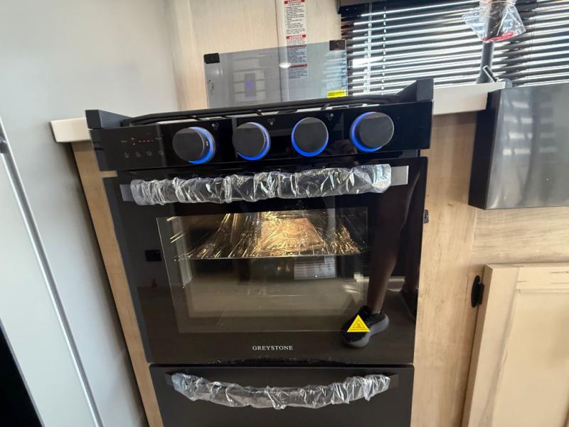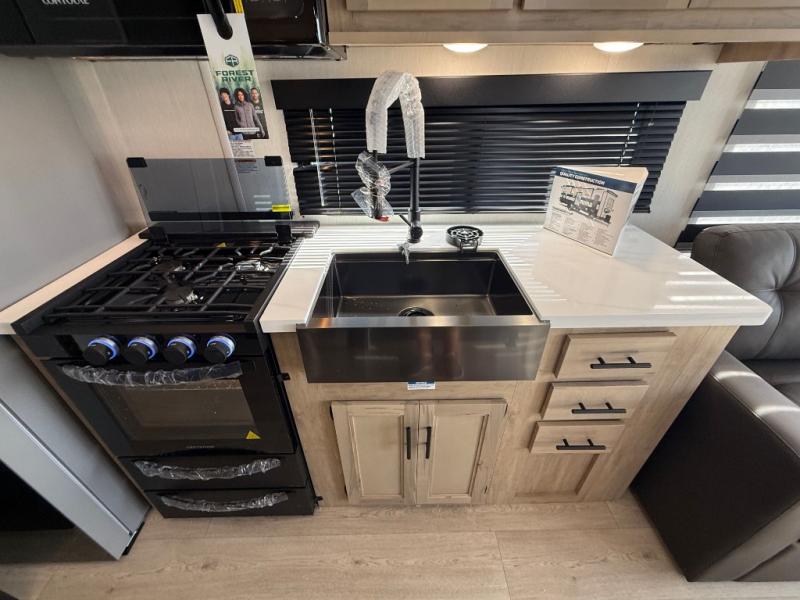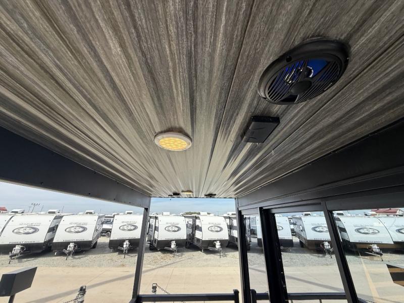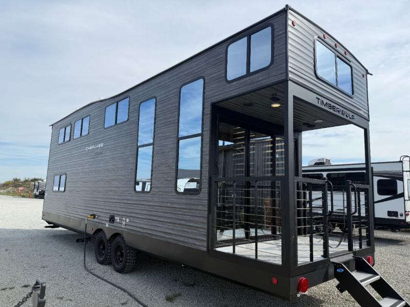 Enjoy comforts of home wherever you decide to roam in a Timberwolf destination trailer by Forest River. The seamless roofing membrane with heat reflectivity and power gear frame technology provide a durable foundation to your RV. You will also appreciate the exclusive solar thermo controlled reflective tinted safety glass windows, tire pressure monitors, and an on-demand tankless water heater to make extended stays easier than ever. Inside, the night shades will provide your crew with privacy, while the LED lights illuminate your space. There are also seamless countertops, along with a premium bedding ensemble and comforter, USB charging stations, a supersized central A/C unit, and many more comforts!