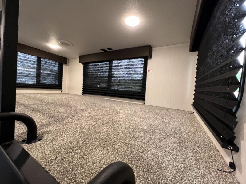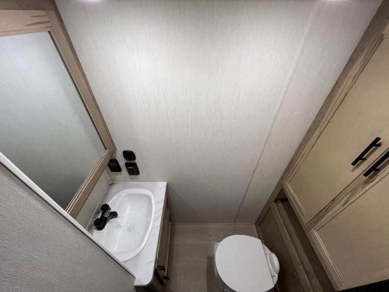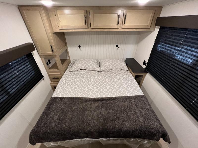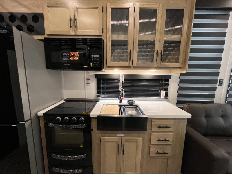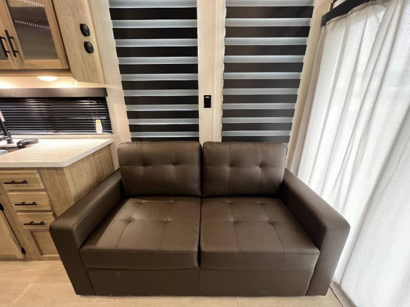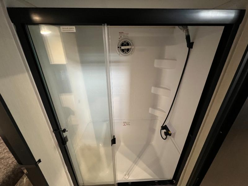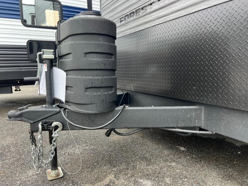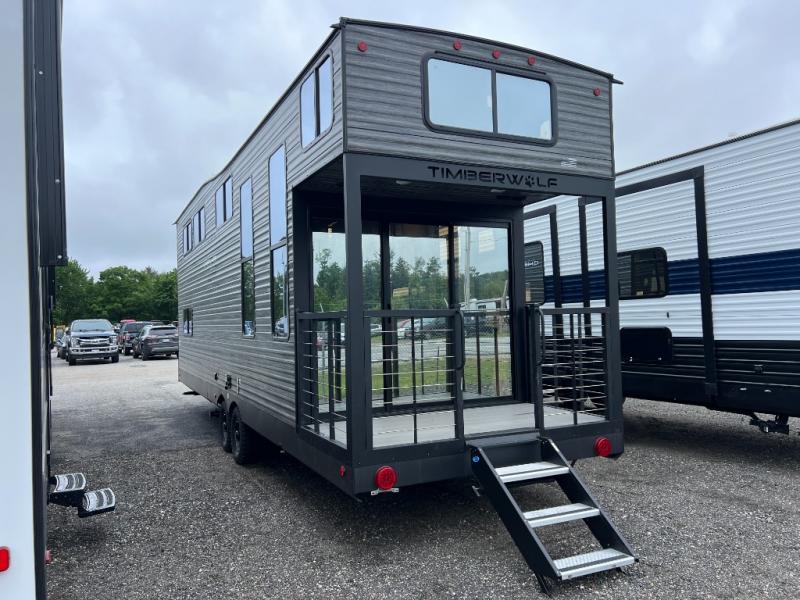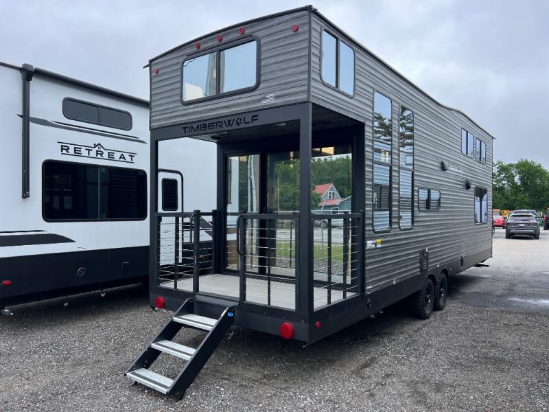 Enjoy comforts of home wherever you decide to roam in a Timberwolf destination trailer by Forest River. The seamless roofing membrane with heat reflectivity and power gear frame technology provide a durable foundation to your RV. You will also appreciate the exclusive solar thermo controlled reflective tinted safety glass windows, tire pressure monitors, and an on-demand tankless water heater to make extended stays easier than ever. Inside, the night shades will provide your crew with privacy, while the LED lights illuminate your space. There are also seamless countertops, along with a premium bedding ensemble and comforter, USB charging stations, a supersized central A/C unit, and many more comforts!