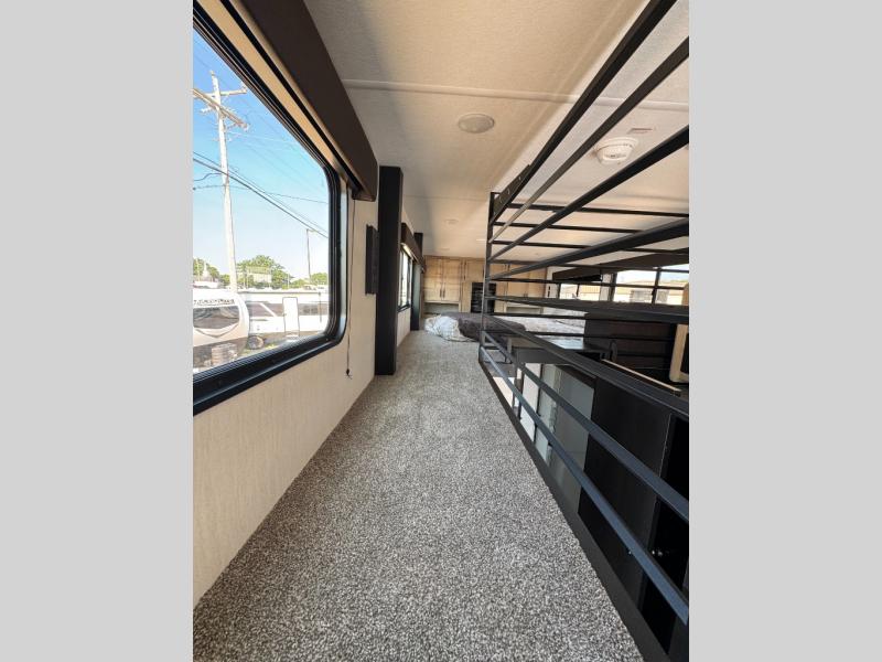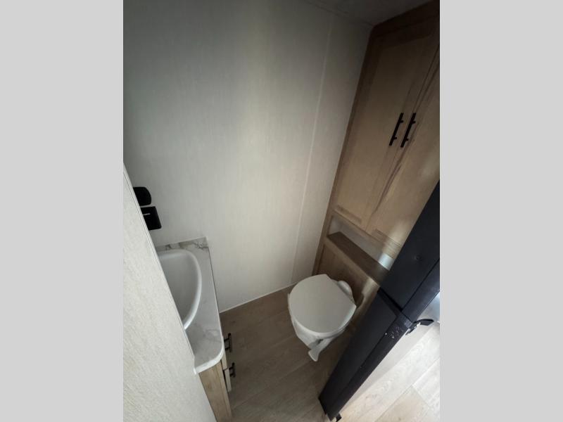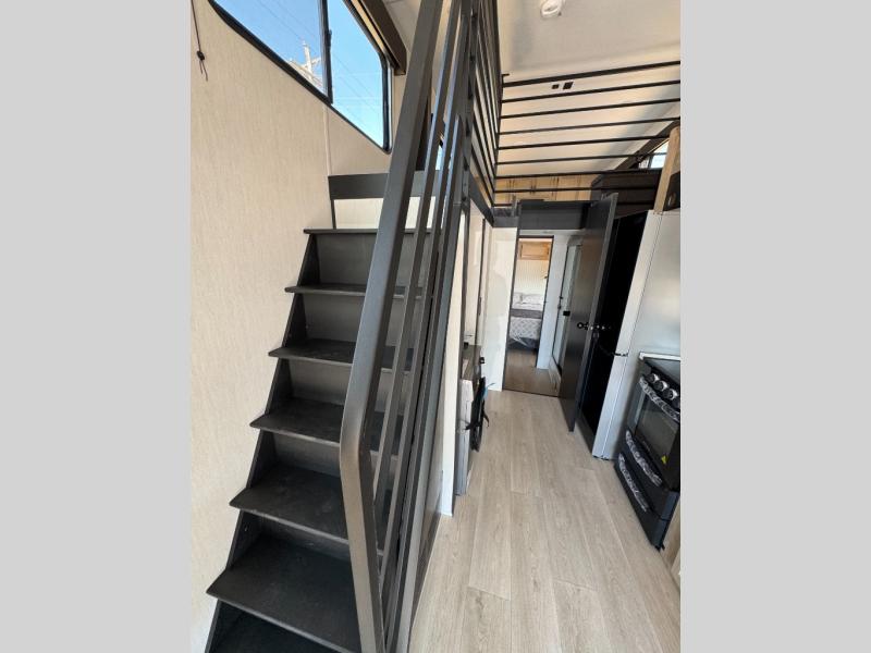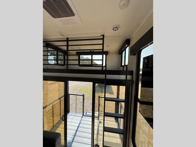 This model is similar to 16ML but larger! A bigger bathroom, king bed in the lower master, and a queen bed plus a twin bunk mat in the front loft. There is an 18 cu. ft. refrigerator so you can stock up for a week long vacation, a hide-a-bed sofa that can transform into added sleeping for guests, and a high top table with two stools to dine at. A ladder allows access into the upper front loft that is over the covered patio. The bathroom below is split with a shower on one side, and a private toilet area and sink opposite. And the view is amazing from just about anywhere inside.