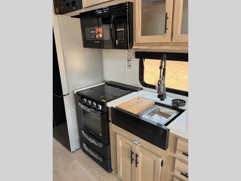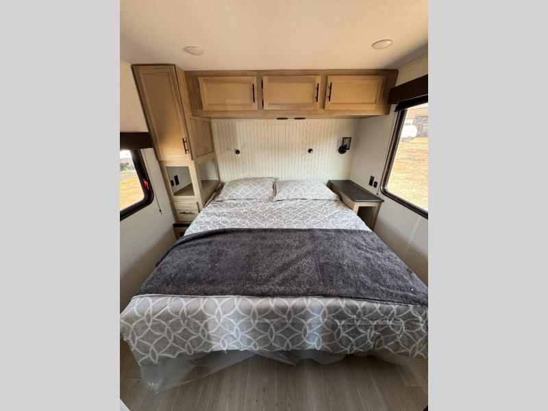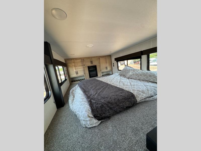 Enjoy comforts of home wherever you decide to roam in a Cherokee Timberwolf destination trailer by Forest River. The seamless roofing membrane with heat reflectivity provide a durable foundation to your RV. You will also appreciate the exclusive solar thermo controlled reflective tinted safety glass windows and an on-demand tankless water heater to make extended stays easier than ever. Inside, the night shades will provide your crew with privacy. There are also seamless countertops, along with a premium bedding ensemble and comforter, USB charging stations, a supersized central A/C unit, and many more comforts!