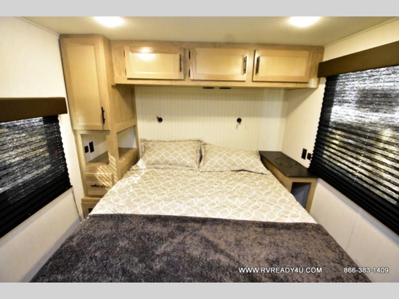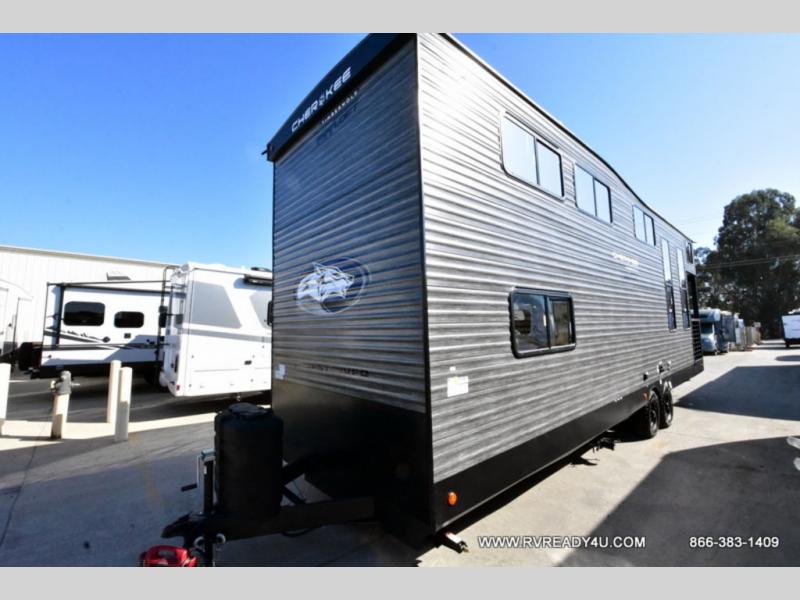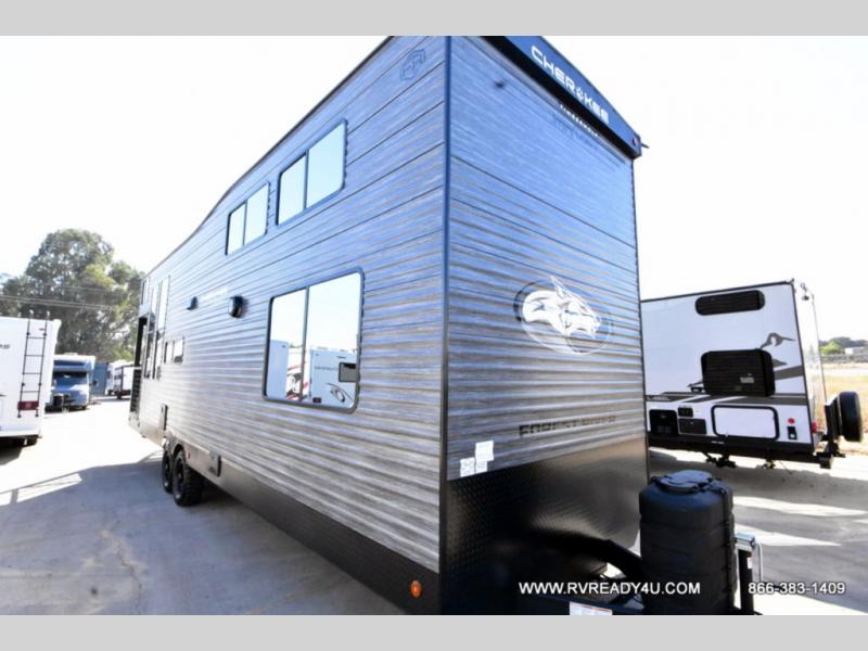 Enjoy comforts of home wherever you decide to roam in a Cherokee Timberwolf destination trailer by Forest River. The seamless roofing membrane with heat reflectivity provide a durable foundation to your RV. You will also appreciate the exclusive solar thermo controlled reflective tinted safety glass windows and an on-demand tankless water heater to make extended stays easier than ever. Inside, the night shades will provide your crew with privacy. There are also seamless countertops, along with a premium bedding ensemble and comforter, USB charging stations, a supersized central A/C unit, and many more comforts!