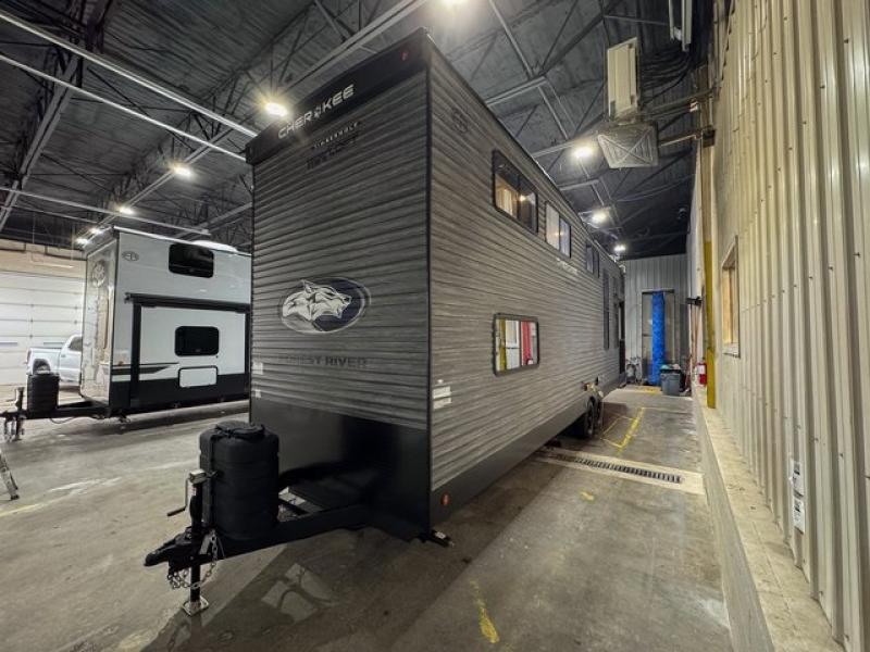 Enjoy comforts of home wherever you decide to roam in a Cherokee Timberwolf destination trailer by Forest River. Each trailer is made with quality construction materials, like with all Forest River products, plus you'll find convenient exterior features to make extended stays easier than ever. You will love the interior with its cozy sleeping arrangements, full bath and kitchen amenities, plus plenty of storage spaces for food, clothing, gear and more! With mini loft and full-size destination trailers available, you're sure to find a Cherokee Timberwolf that fits your needs!