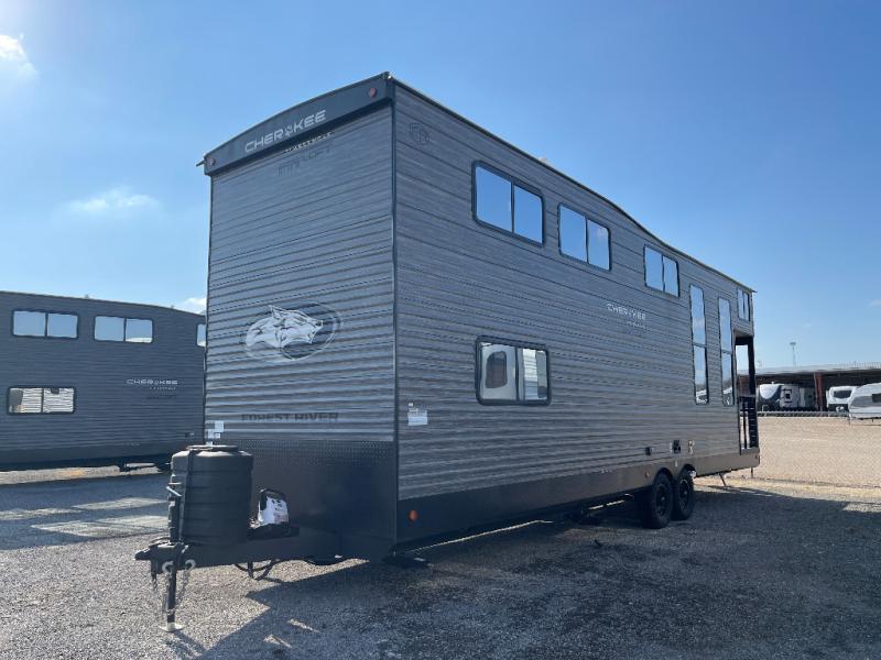 Enjoy comforts of home wherever you decide to roam in a Cherokee Timberwolf destination trailer by Forest River. Each trailer is made with quality construction materials, like with all Forest River products, plus you'll find convenient exterior features to make extended stays easier than ever. You will love the interior with its cozy sleeping arrangements, full bath and kitchen amenities, plus plenty of storage spaces for food, clothing, gear and more! With mini loft and full-size destination trailers available, you're sure to find a Cherokee Timberwolf that fits your needs!
