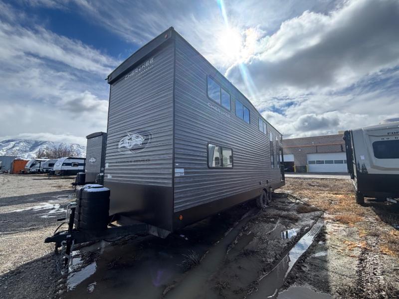 Enjoy comforts of home wherever you decide to roam in a Cherokee Timberwolf destination trailer by Forest River. Each trailer is made with quality construction materials, like with all Forest River products, plus you'll find convenient exterior features to make extended stays easier than ever. You will love the interior with its cozy sleeping arrangements, full bath and kitchen amenities, plus plenty of storage spaces for food, clothing, gear and more! With mini loft and full-size destination trailers available, you're sure to find a Cherokee Timberwolf that fits your needs!